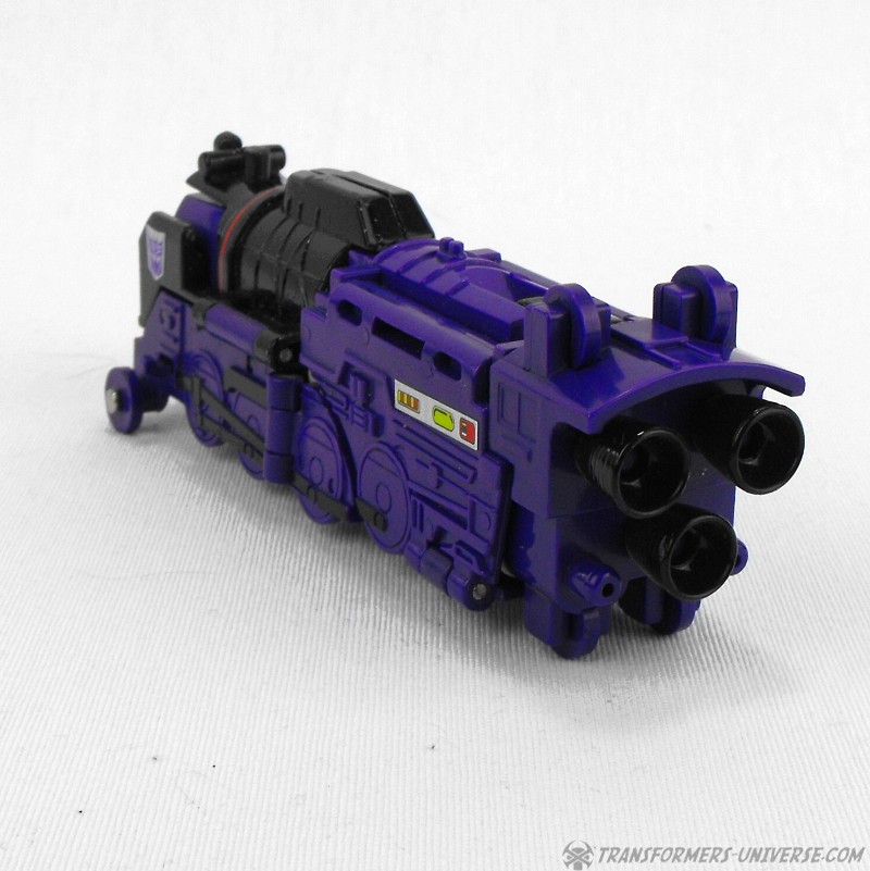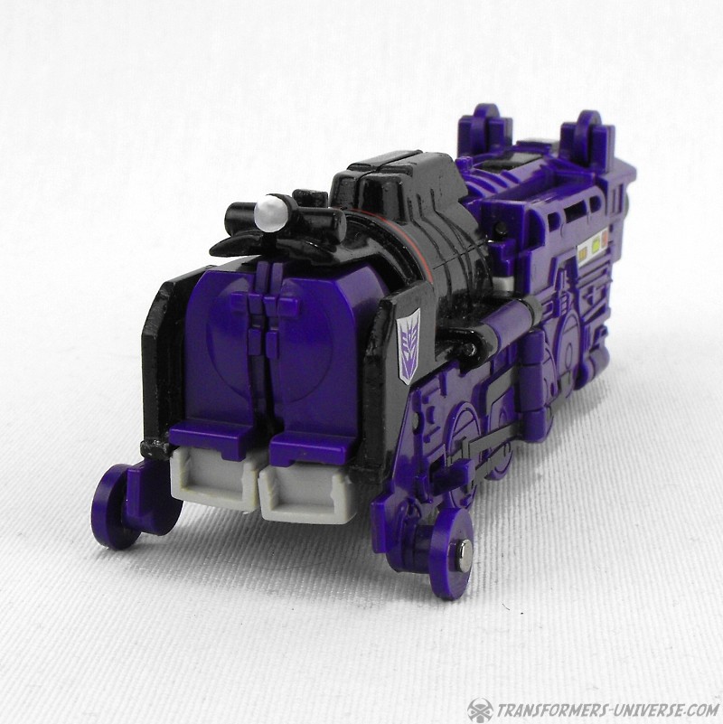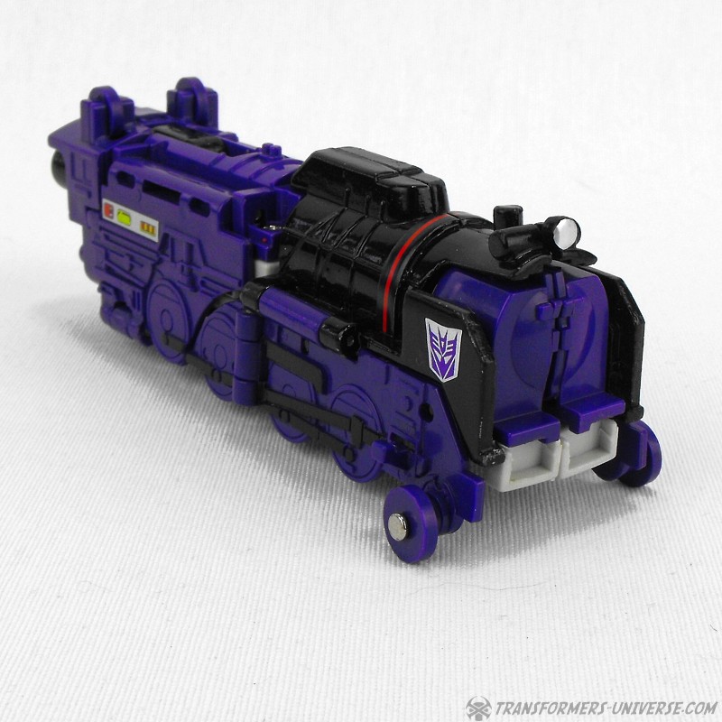 Remarks: Astrotrain is probably the best and most famous of the triple changers. Playing parts in Seasons 2 and 3 of the cartoon as well as in the movie he is one of the more famous Decepticons. As one of the old-style Transformers he also comes with partly metal parts and a very solid feel, enabling him to survive 20 years without too much damage. All in all, a great toy with cool vehicle modes and a pretty decent character in the course of the cartoon.