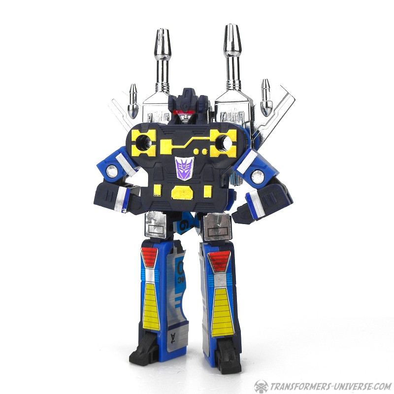 Remarks: The most outstanding feature about Frenzy is that he often gets confused with Rumble. The two are identical robots with different colours, but for the cartoon the colours were reversed. So Frenzy is blue as a toy, but red in the cartoon, with Rumble vice versa. As a toy Frenzy is pretty nifty, though, a surprisingly posable little guy with lots of detailing and a cool look. My only complaint about him is his fragility, I fear that transforming him too often will break him sooner rather than later.