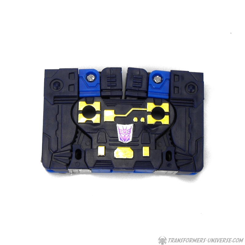 Alternate Mode: Frenzytransforms into a small cassette that fits into Soundwave's tape deck (or that of the Autobot Blaster for that matter). The cassette has all the necessary detailing to appear as an actual micro cassette from the eighties. Now as alternate modes go a simple square isn't that spectacular. What is, though, is how this rather intricate robot can fold itself together like that. So bottom line, a good alternate mode.