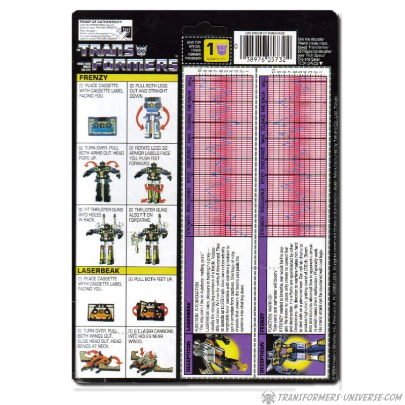 A little side note: Frenzy was first available packaged with Laserbeak in 1984, but was re-issued two years later in a package with fellow cassette Ratbat.