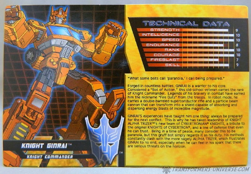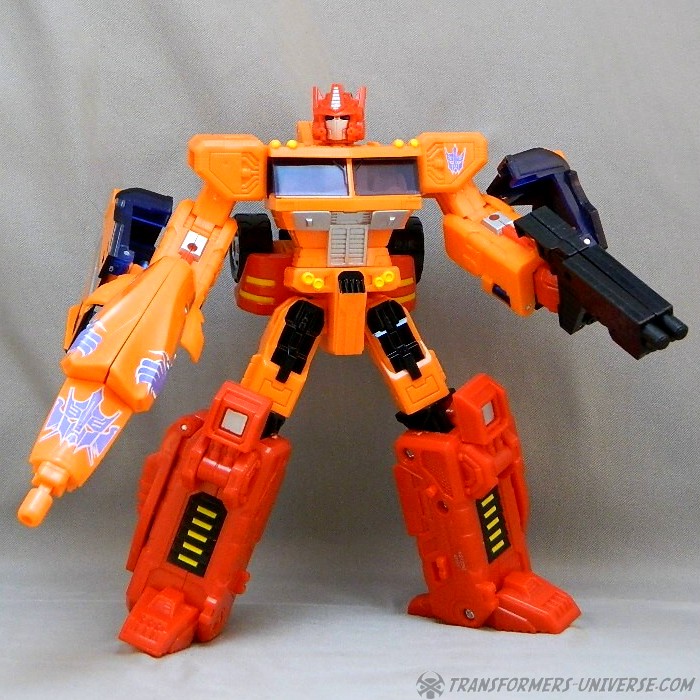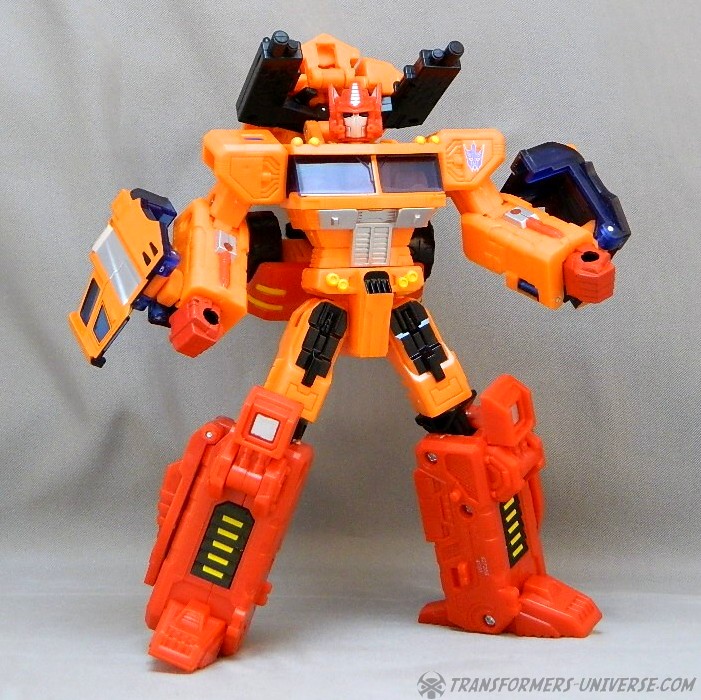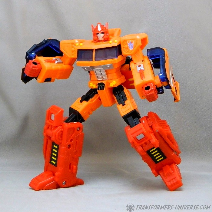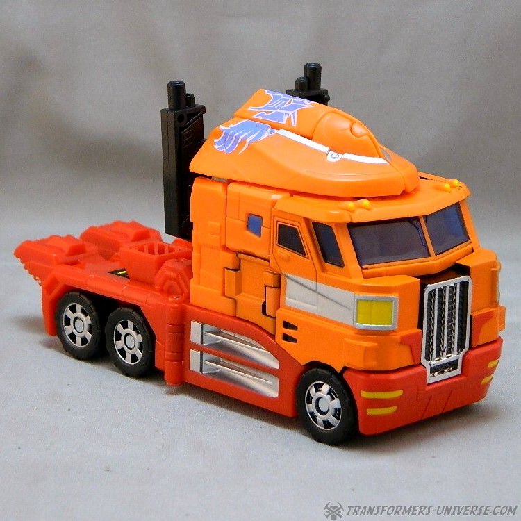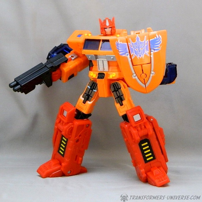 Remarks: Ginrai, who was an exclusive at the 2014 Botcon convention, is yet another version of the popular Classics Optimus Prime mold (like Classics Ultra Magnus, Shattered Glass Optimus Prime, and quite a few others). His orange paintjob and name are homages to Fire Guts Ginrai from Takara's G1 line and the figure has been slightly retooled, so that it can hold its truck canopy as a shield. While I personally never had this version of the figure, I believe every serious Transformers collector should own at least one version of this excellent mold.