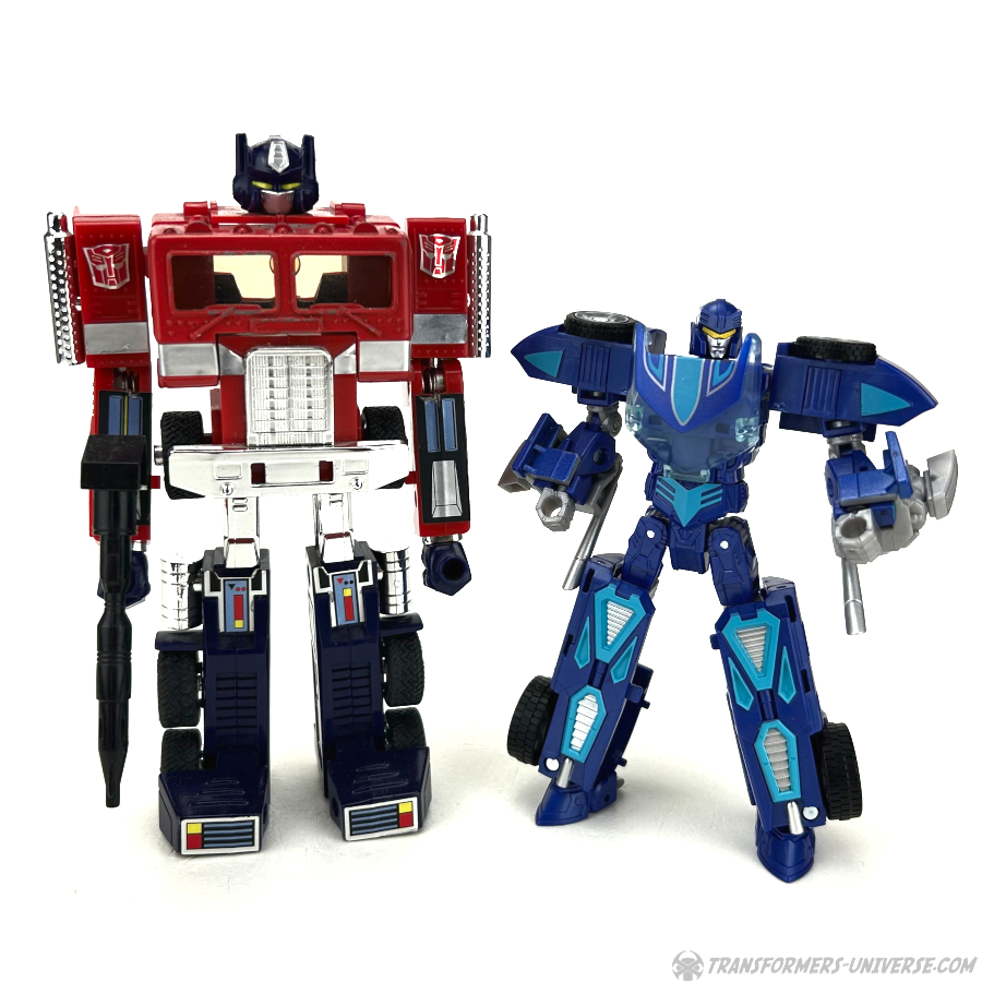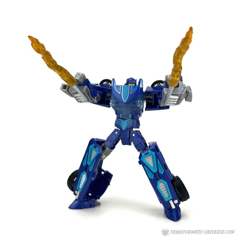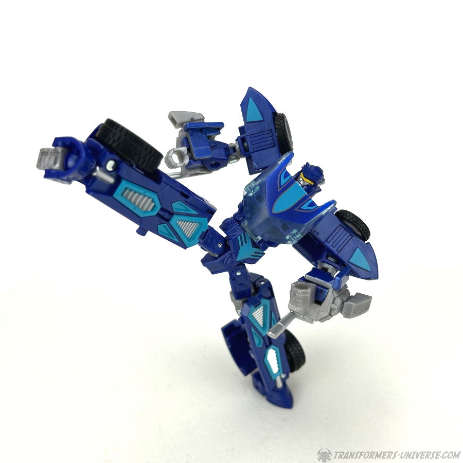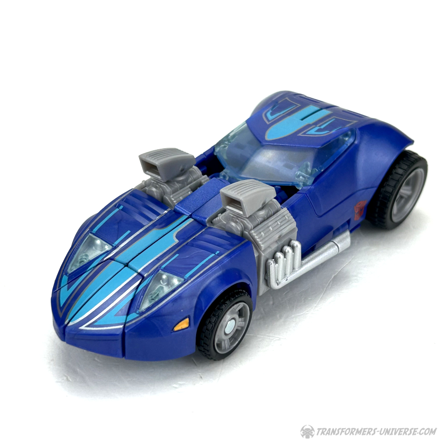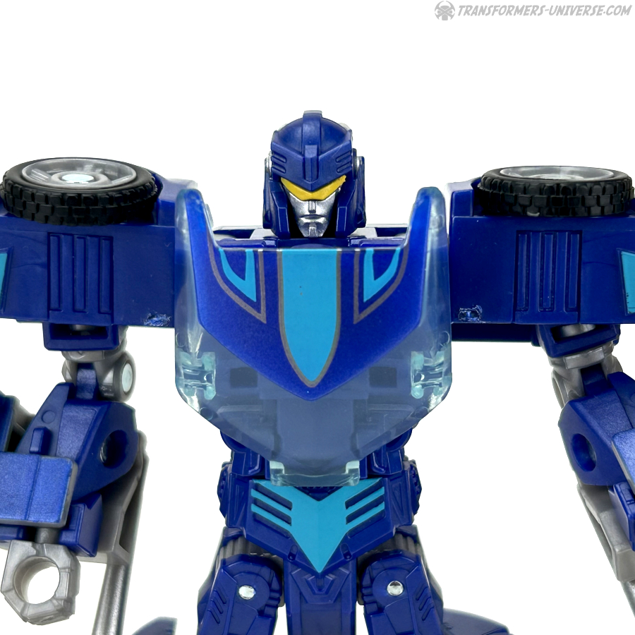 Robot Mode: Twin Mill is a Deluxe-sized robot decked out in blue that clearly transforms into a car. You got the wheels on the shoulders and the legs to prove it, not to mention the engines with the exhaust pipes on the forearms. The latter gives him some minor G2 vibes, but overall he is just a good-looking car robot. He bears some resemblance to bots like RID Sideburn or Turbomaster Boss, but overall he is pretty much his own guy.