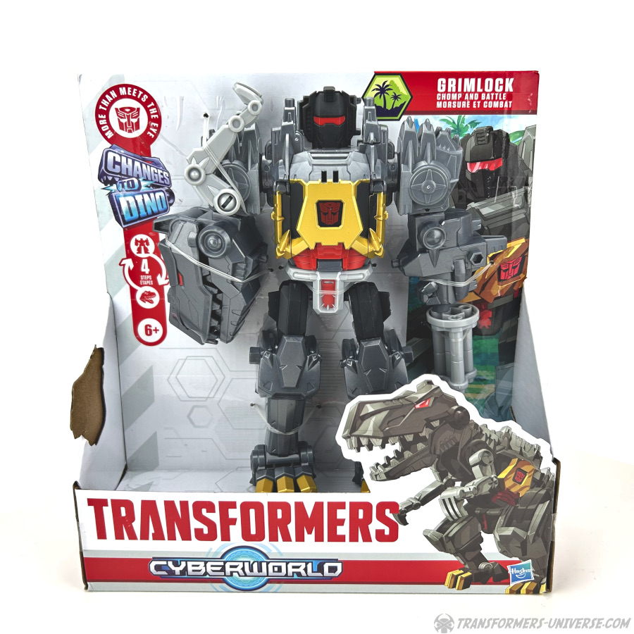 Prelude: A decade ago, when Age of Extinction came out, endless rows of Chomp & Stomp Grimlock toys warmed the shelves. Fast forward to today and Hasbro has finally figured out how to properly turn the Dinobot commander into a fun, interactive toy for a kid-oriented line. Cyberworld Chomp & Battle Grimlock is here, Russian accent and all, so let’s say go!