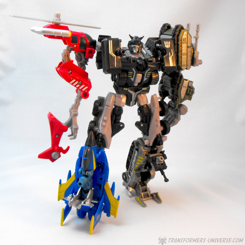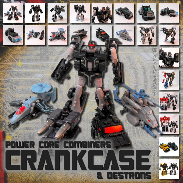 Remarks: The Power Core Combiner line is a strange mix in that they mostly forwent the known names of Transformers (no Starscream, Bumblebee, Optimus, Soundwave, etc.) but still paid homage to them in terms of looks and paint jobs. Case in point: Crankcase, who is a double homage, covering both G1 Motormaster / Menasor, as well as RID Scourge / Black Convoy and the RID commandos / Destrongers. The result is one of the better commander / drone combinations of the PCC line and personally I think this mold works better in black than as Huffer. So for fans of the PCC line, Crankcase and the Destrons are a good choice.