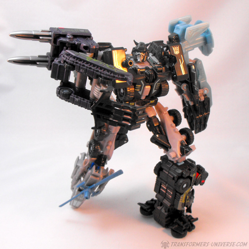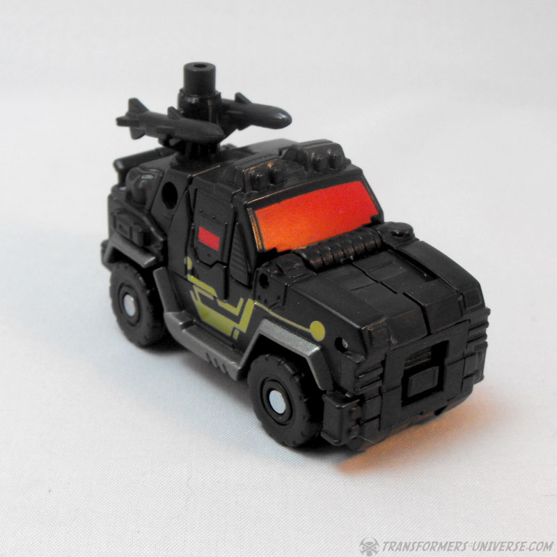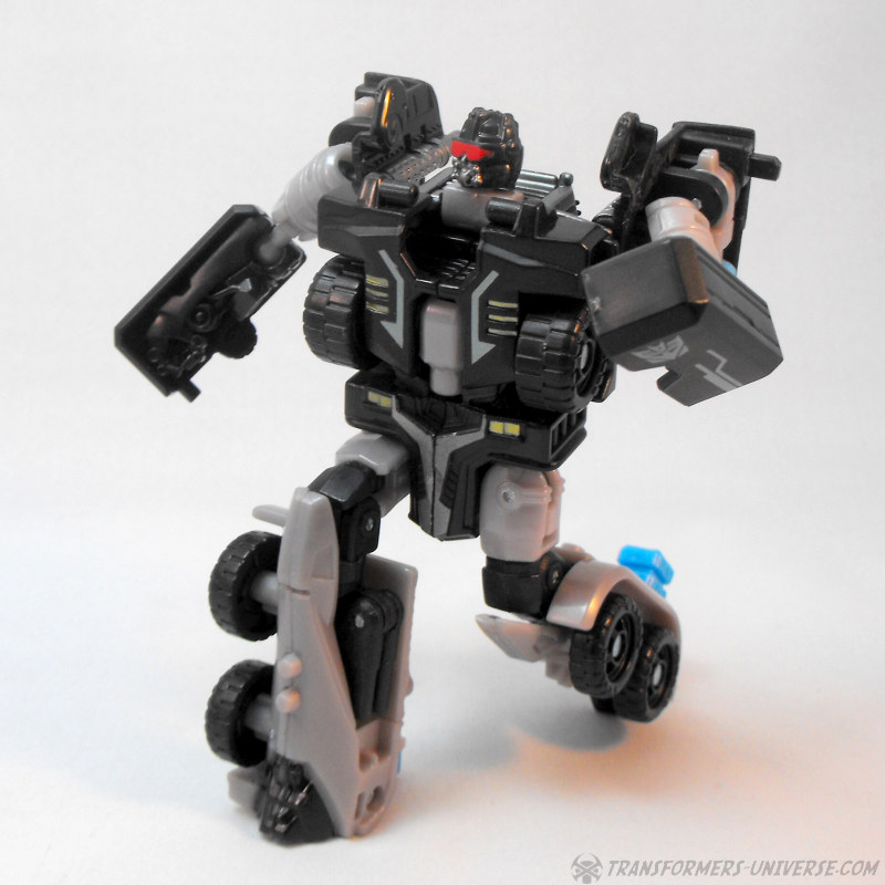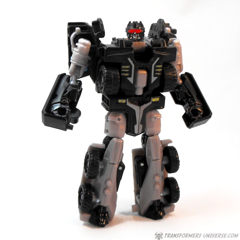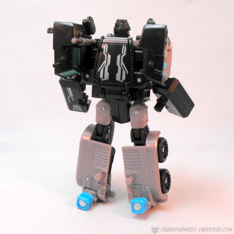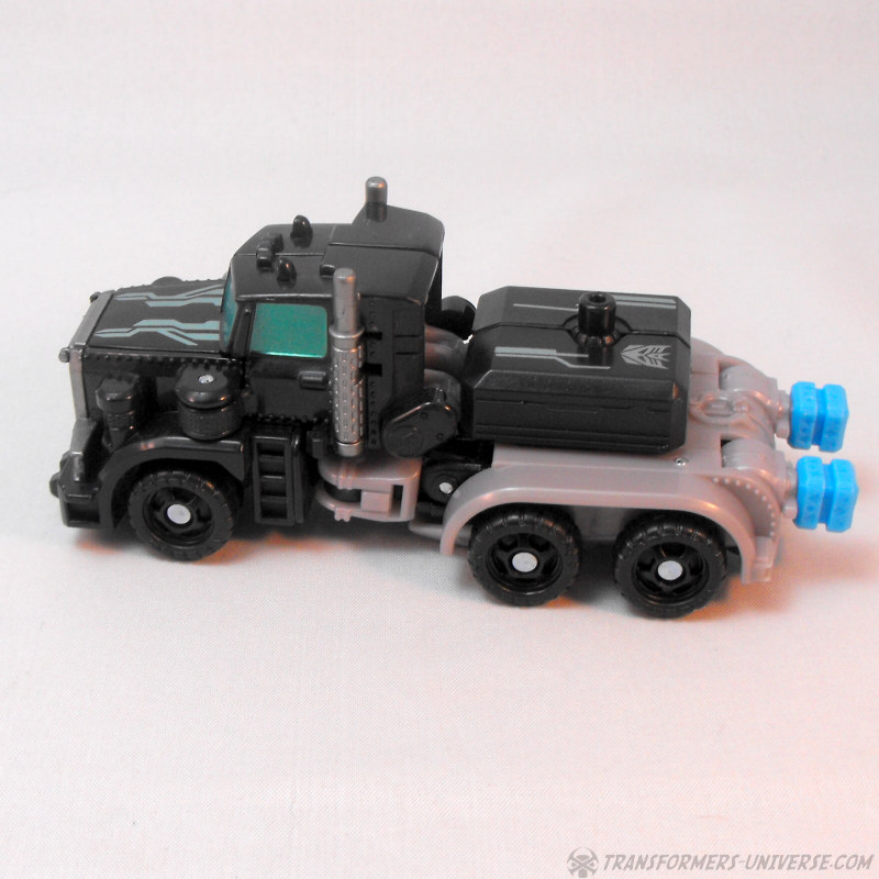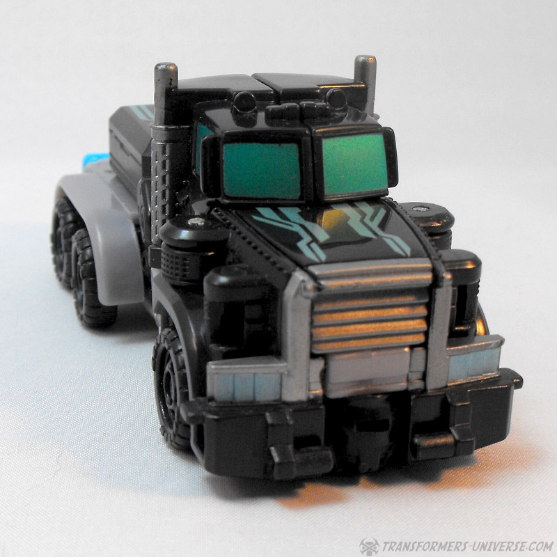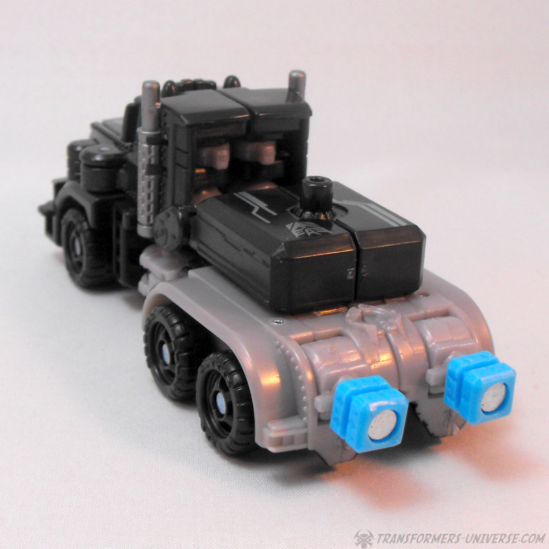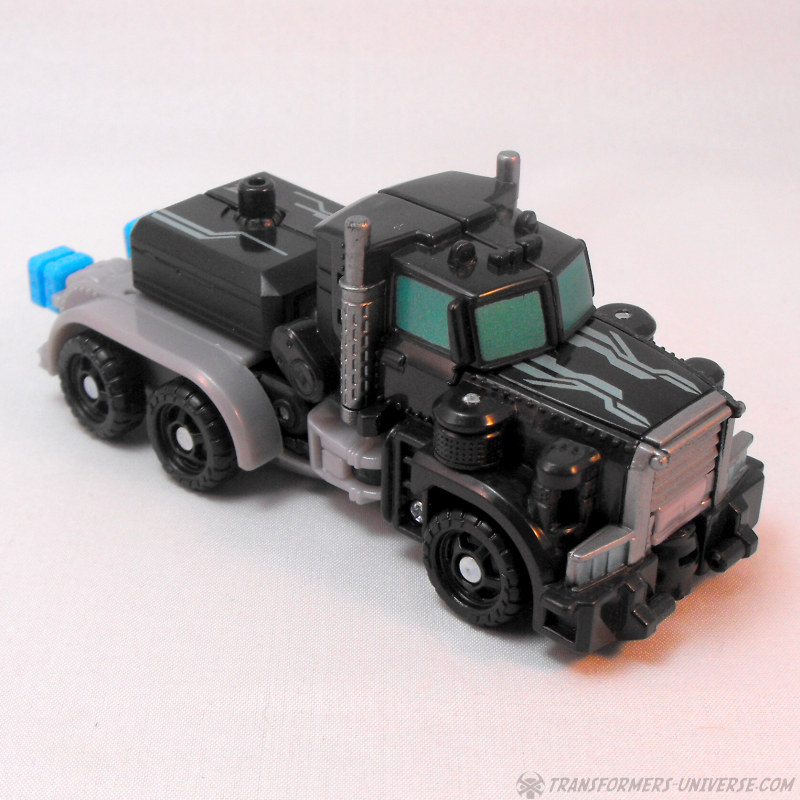 Alternate Mode: Crankcase transforms into a black and grey truck very similar to that of Scourge / Black Convoy once again. The truck looks pretty good and has a fair amount of detailing for the size class, so no complaints. There are those bright blue PCC connector thingies sticking out the back once again, of course, but other than that: no complaints. A very nice truck mode.
