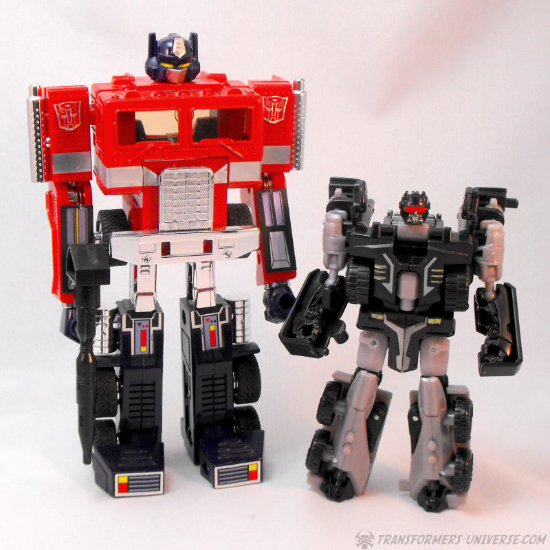 Homage-wise Crankcase is about a third Motormaster (black truck who becomes a combiner torso) and two thirds RID Scourge / Black Convoy (the actual robot). Either homage works for me, though I’m more of a Black Convoy guy. Anyway, no real complaints here except for the lack of a weapon. A very nice mold and the black and grey paintjob suits it. Thumbs up.