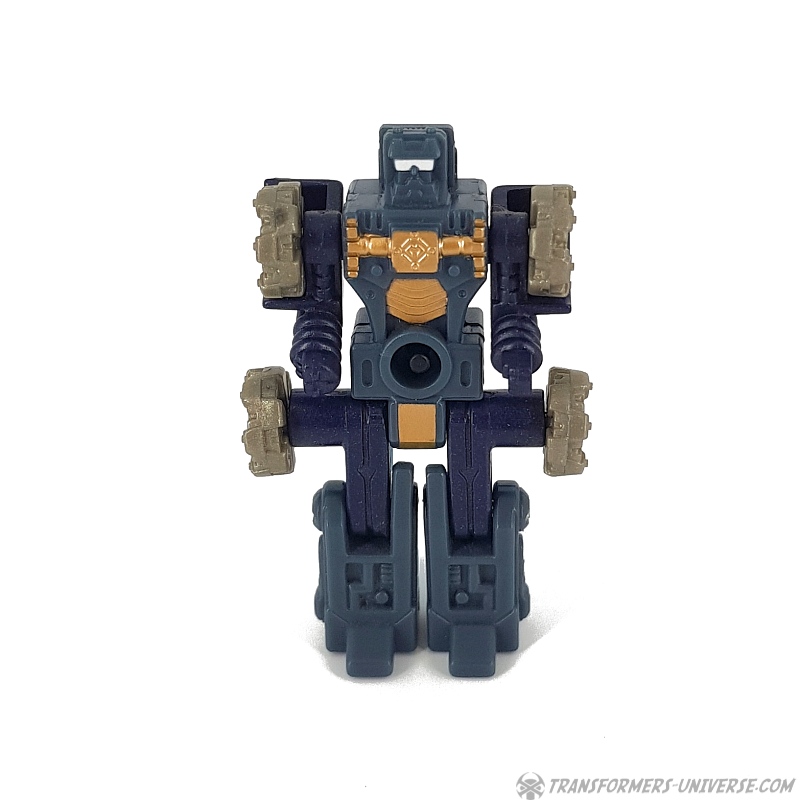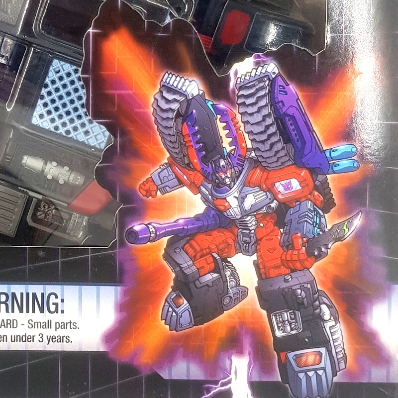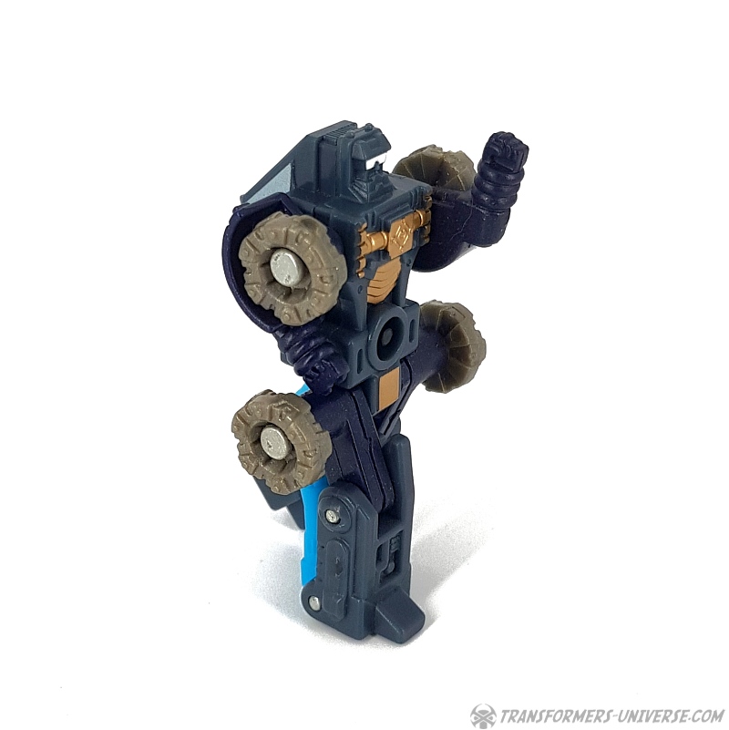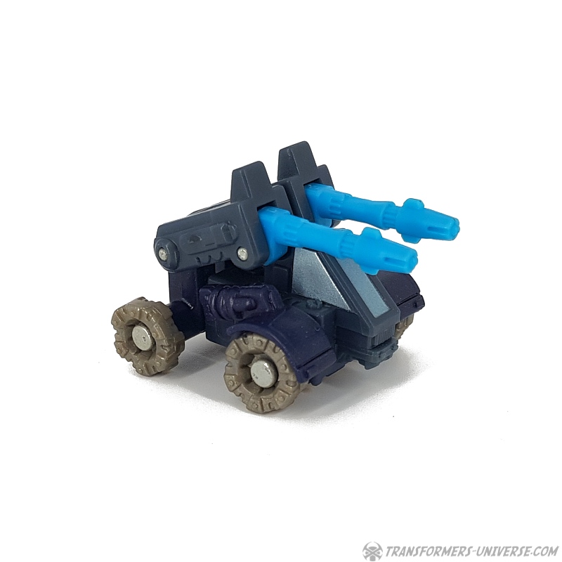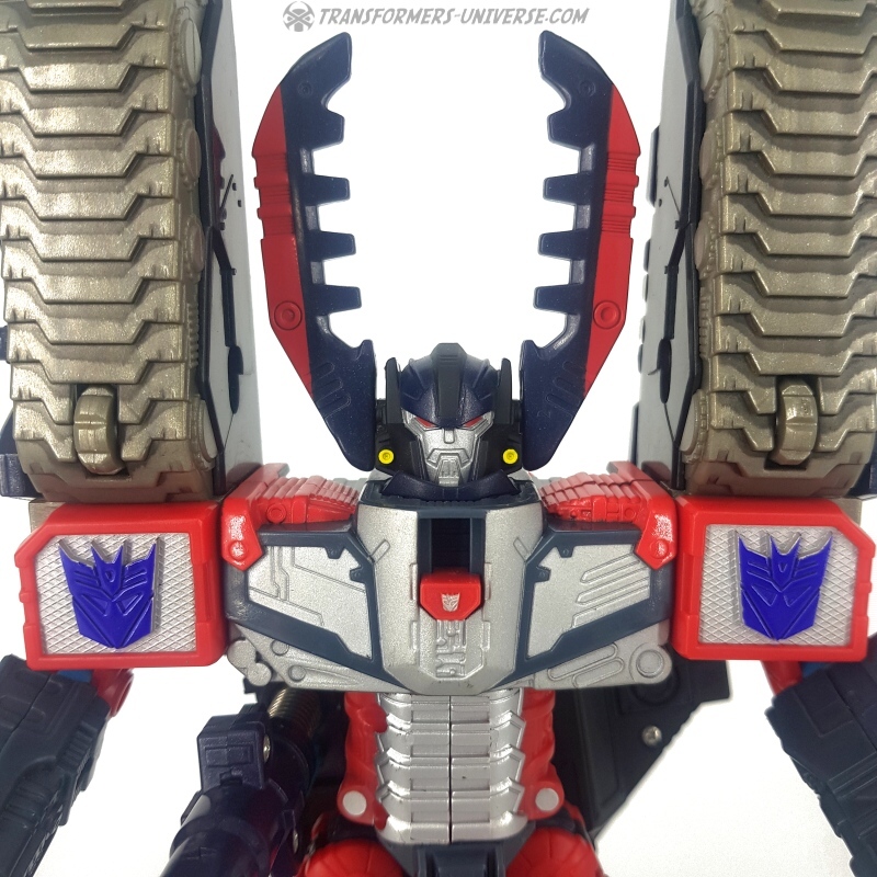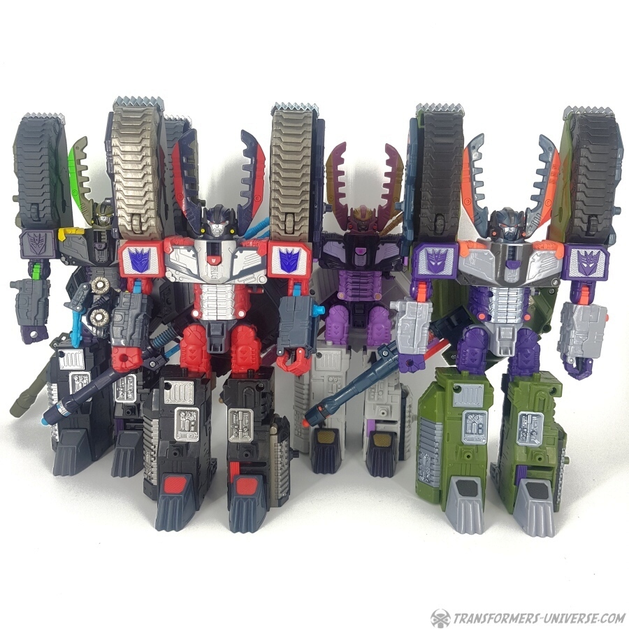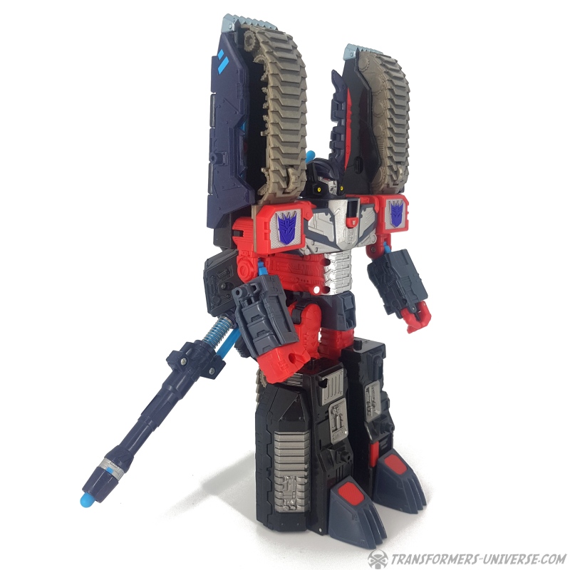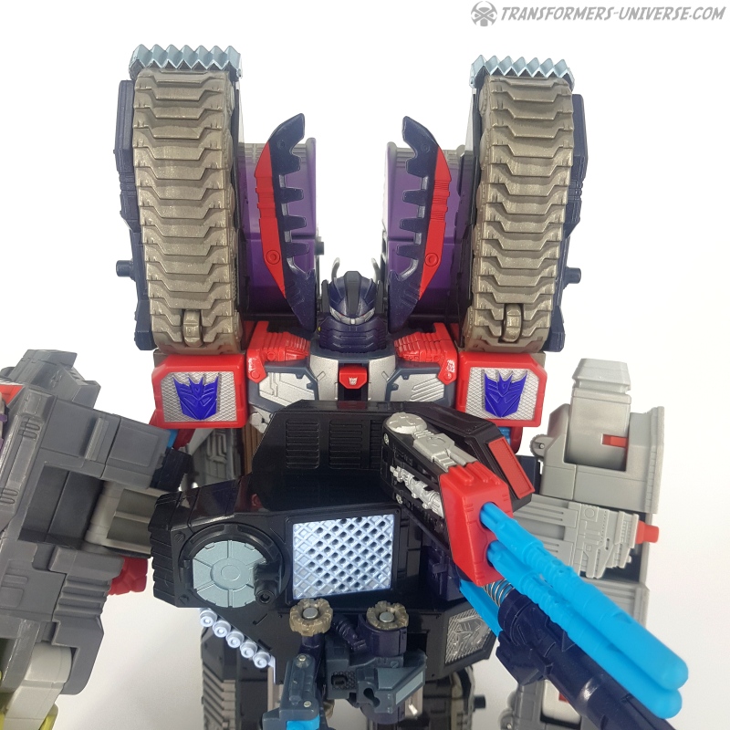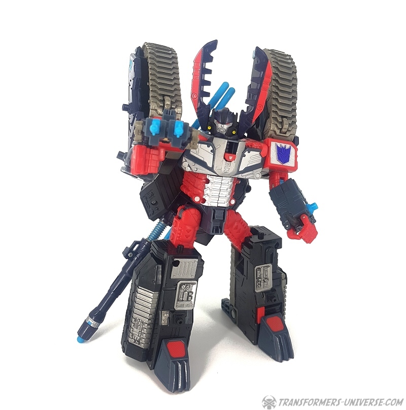 The sudden appearence of Megazarak on Cybertron´s political and military landscape shifted the planet´s balance of power forever. This new warlord had a thirst for destruction and chaos unlike any other Decepticon leader before him. With no tolerance for weaker species, Megazarak went on a genocidal rampage throughout Cybertron, beginning with the Destruction of his reality´s Matrix-bearer. The remains of the Autobot army were soon dispatched with ruthless efficiency and in a short period of time, Megazarak became the most feared despot throughout the galaxy. In both modes, Megazarak fires a wide variety of lethal electromagnetic attacks from his side-mounted cannon. His Micromaster partner, Caliburn, doubles as a lightning blaster - discharging 60 kilovolt bursts at his opponents, Although immensely powerful, Megazarak does have a weakness - his preoccupation for hunting down the remaining Autobot who had eluded his wrath - Defensor.
