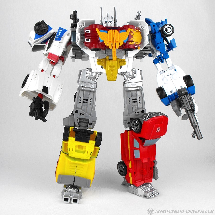 Remarks: Optimus Maximus only combined a single time in the IDW comics when Prowl used the Enigma of Combination to forcibly merge with the others to put an end to an ongoing combiner rampage. Optimus Maximus is a sort-of homage, though, to the G1 cartoon episode “Masquerade”, where a group of Autobots masqueraded as the Stunticons (including combining into Menasor) in order to foil a Decepticon plot. Okay, only Optimus and Mirage were part of that operation back then, but still. Fitting then that Optimus Maximus uses the exact same molds as Combiner Wars Menasor.