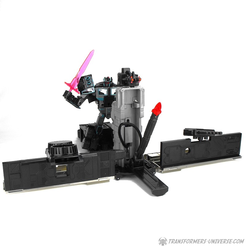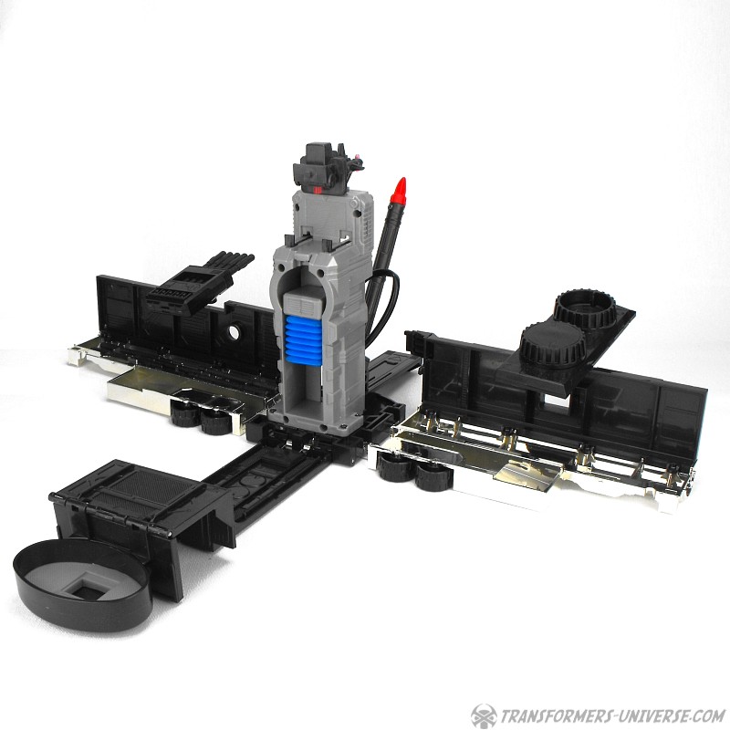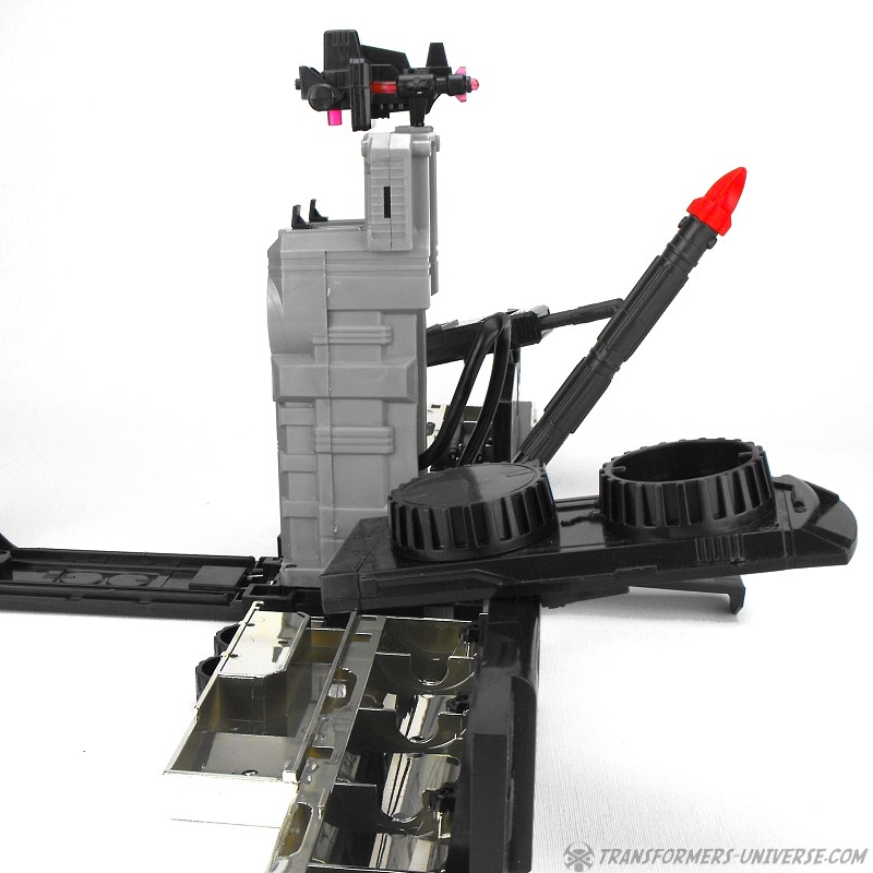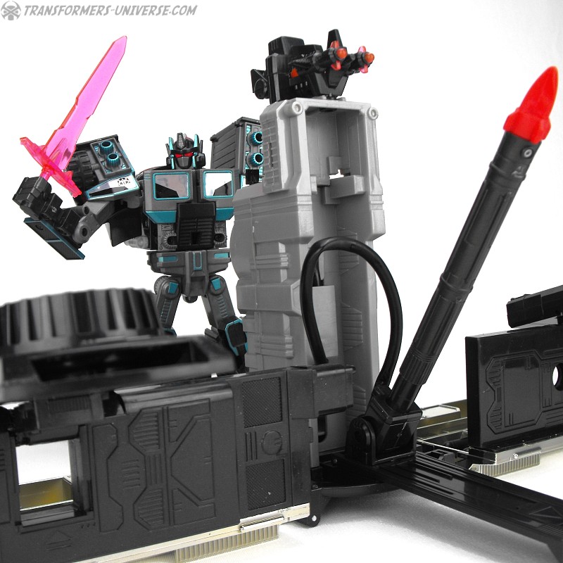 Add-Ons / Partners: Black Convoy's trailer opens up into a battle station that can shoot multiple missiles and disks. I nearly got a heart attack when first trying out this mode, as a pretty big spider had stowed away inside the disk launcher and came crawling out when I tried to fire it. The station as such is decent, one of the better trailer-turned-battle-station, but nothing too special.
