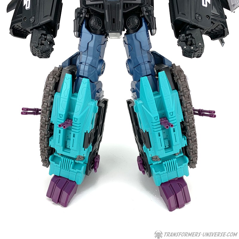 The chest panels are pretty nice, though whether you use them or not is a very subjective thing. You don’t really need them, they just give you yet another smidgeon of G1-flair. The guns for the base mode are nice, though I am not a big fan of Carnifex’ rather lackluster attempt at one. You can also use them in robot mode, though, where they attach to Carnifex’ legs. Finally the new head is nice, yes, but personally I will stick with the IDW-styled heads. I just adore those luscious lips and manic grin. The G1-styled head is more generic and seems a bit boring in direct comparison.