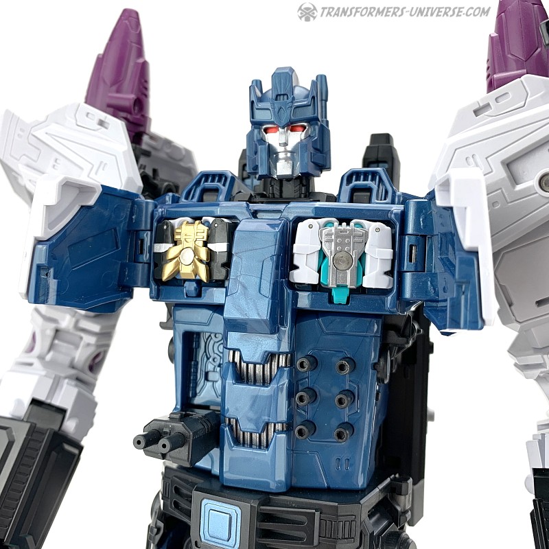 Now the engines don’t really do anything once plugged in. They don’t unlock any gimmicks or anything, but having two tiny engine-figures in his chest was basically Overlord’s entire thing before the IDW comics recreated him, so it’s very nice to have the option. As far as the two figures go, two thumbs up. Very nicely done.
