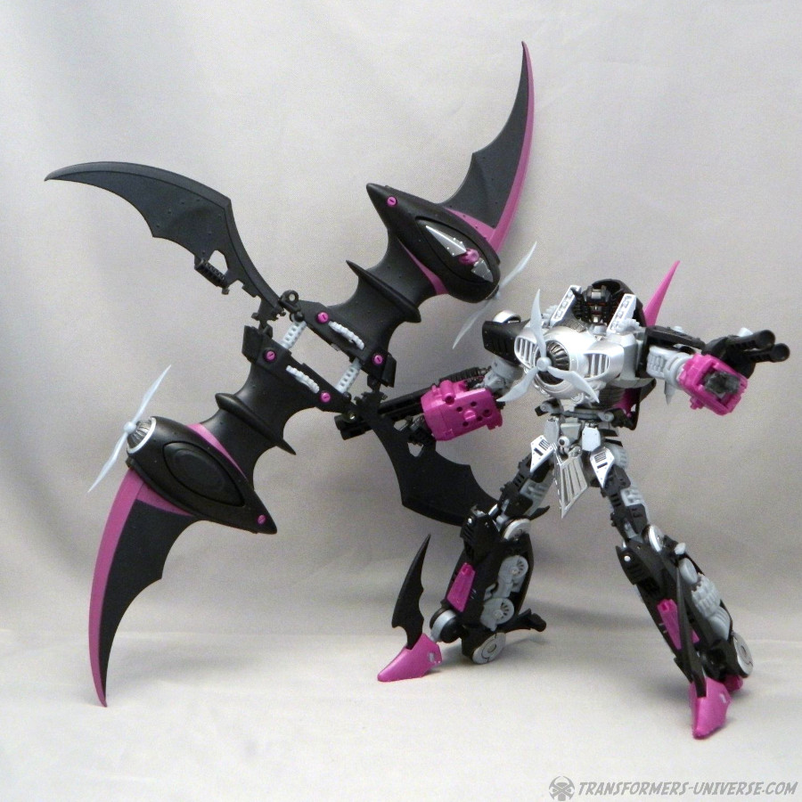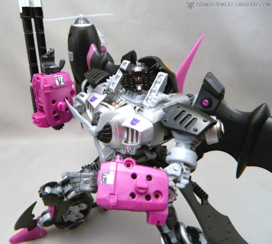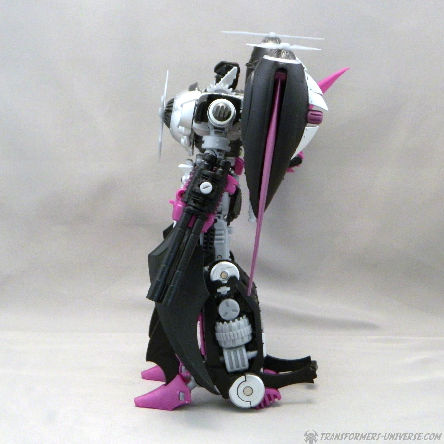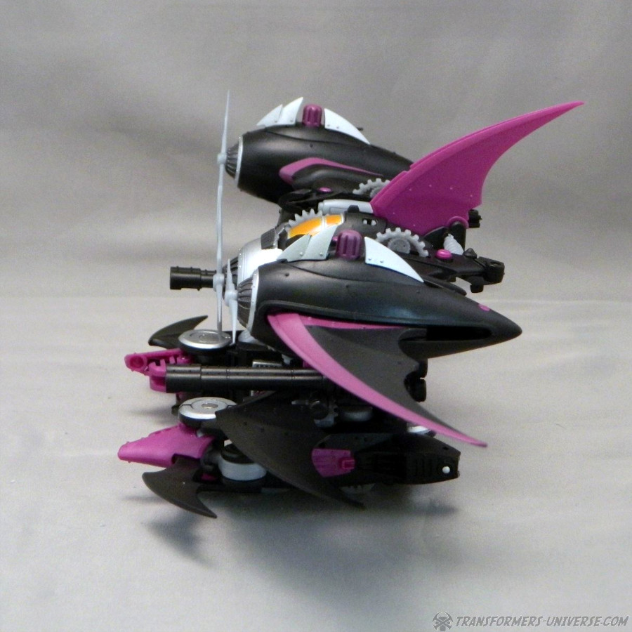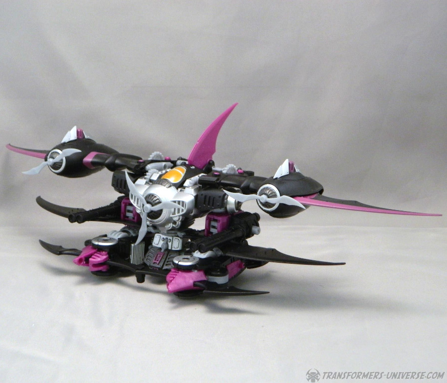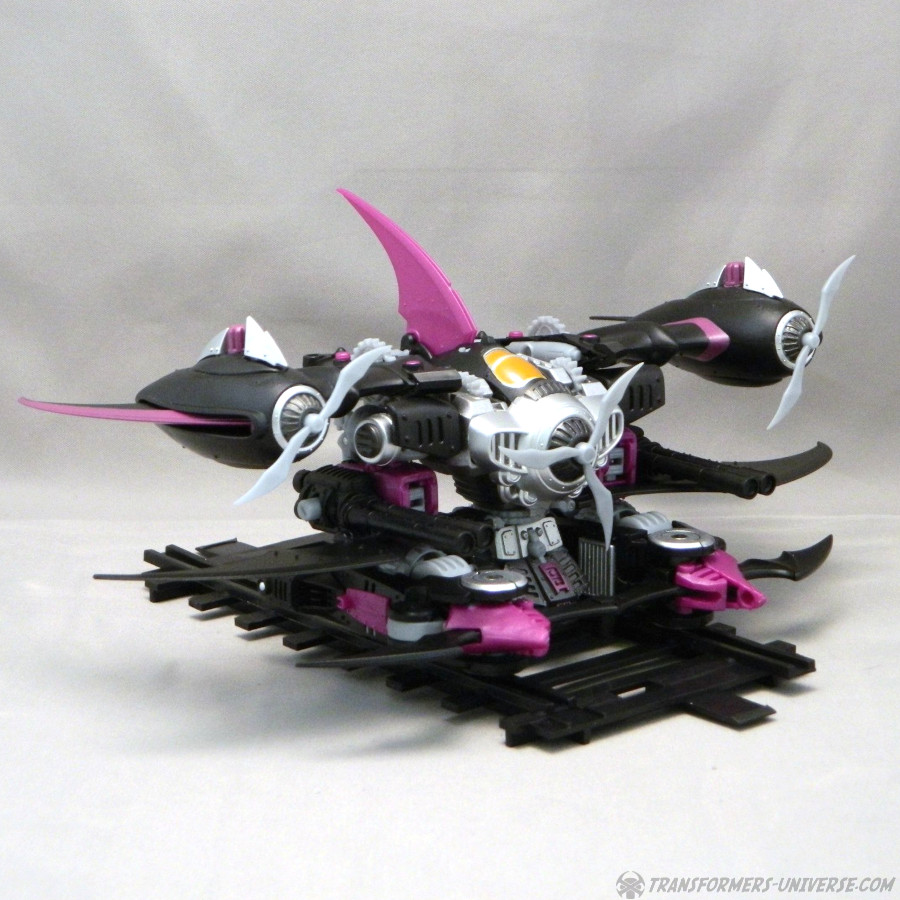 Remarks: Way back in 2006, IDW Comics released an out-of-continuity min-series called Hearts of Steel, set in the late 1800s. The Transformers, having been on Earth since the Ice Age, awoke and scanned the latest in high-tech machines, meaning trains, zeppelins, and biplanes. The series was later folded into the main IDW continuity in a very complicated way that would take too long to explain here. Anyway, a few years later, seeing as Hasbro was making no move to actually produce any figures for this series, Mastermind Creations, a brand-new third party figure, launched their Knight Morpher series, bringing a few of these figures to life. The first was Mastermind Creations Knight Morpher Commander and a bit later the Seekers came out as well, Warper here among them. He's meant to be Skywarp, of course, but could not be called that for legal reasons, of course. Still, my buddy James got him back then and was kind enough to send me these pics.