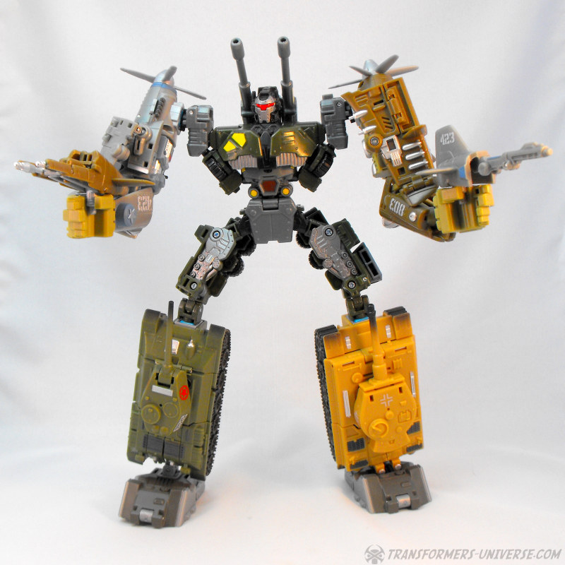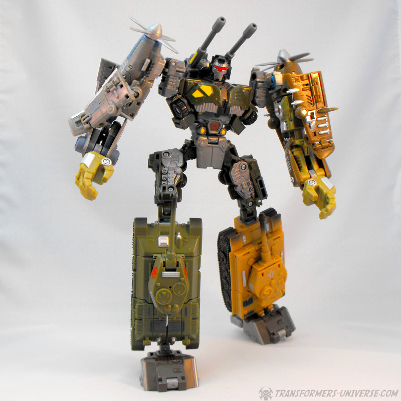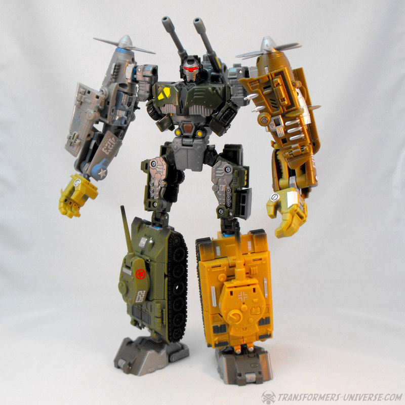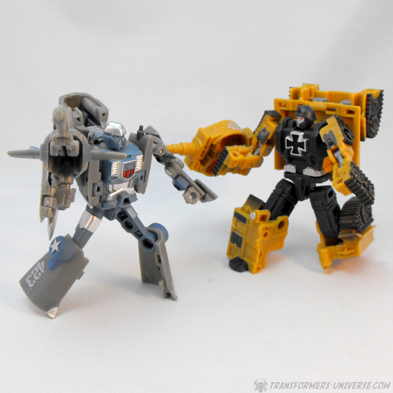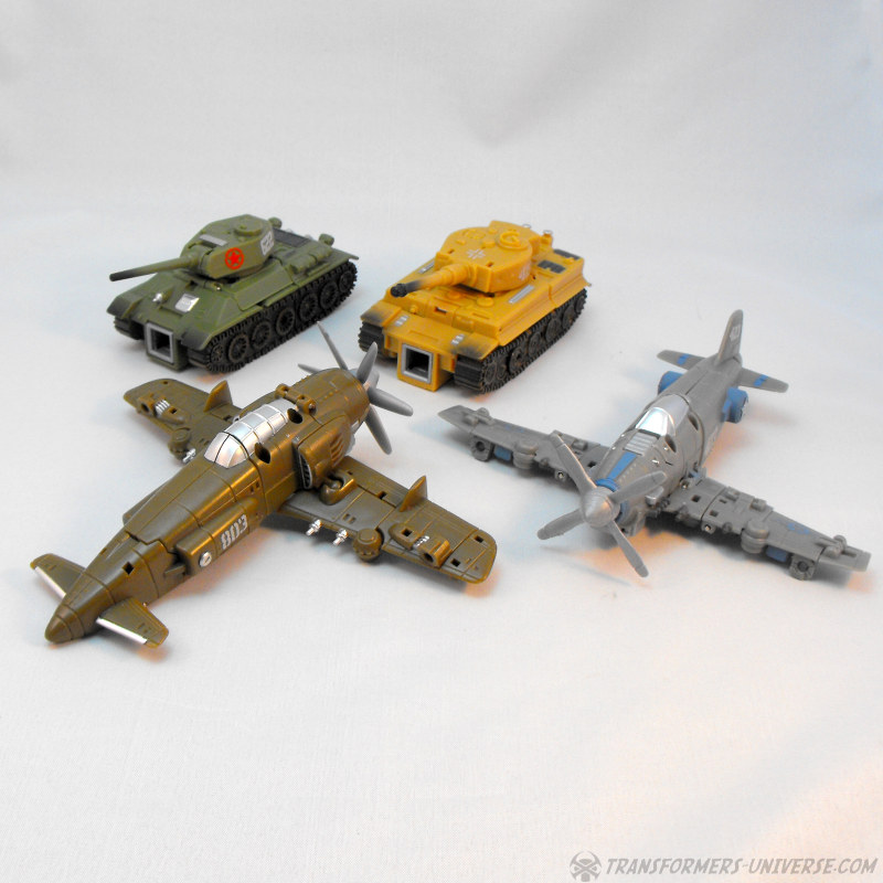 Remarks: TFC’s choice to use WWII era vehicle modes for their new figures might be interpreted as a homage to the G1 Combaticons. In the G1 cartoon series, Starscream created the Combaticons from the wreckage of WWII era vehicles (though how he made a space shuttle from a wrecked propeller plane is anyone’s guess). Also, the pairing choices are a bit odd, as I don’t think many Russian tanks fought Japanese airplanes and while German tanks certainly had to compete with American aircraft, it would probably have made more sense to pair up the tanks and the aircrafts respectively. Anyone interested in these guys was gonna buy all four anyway.