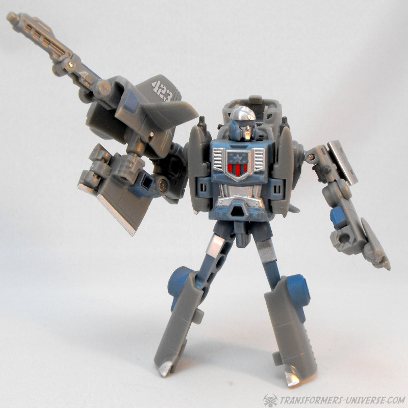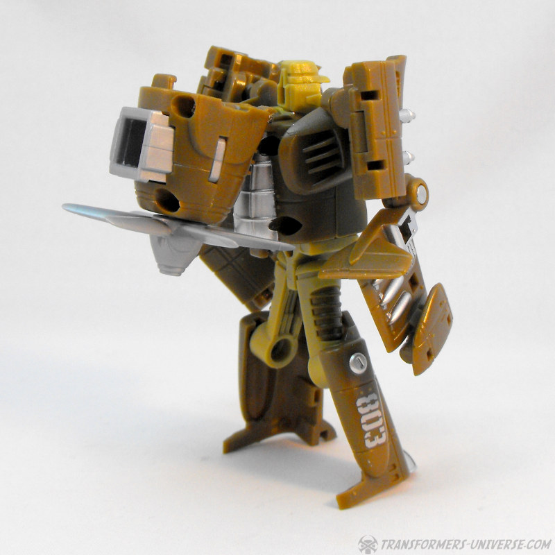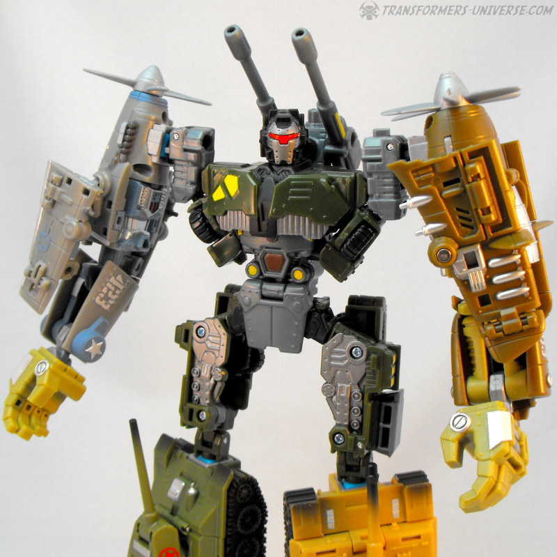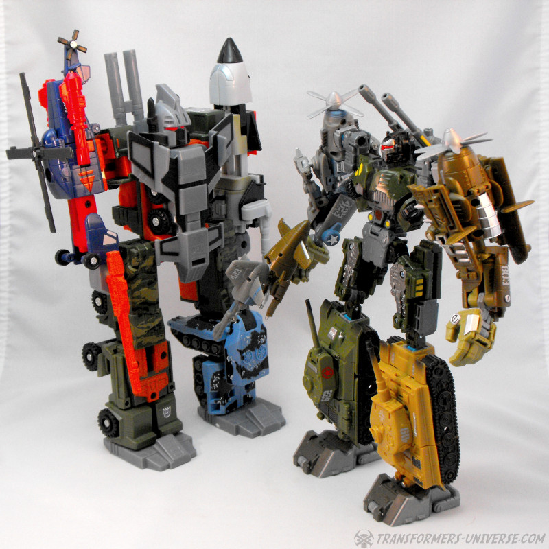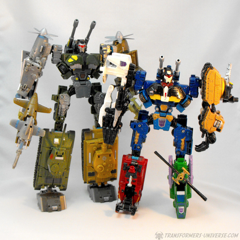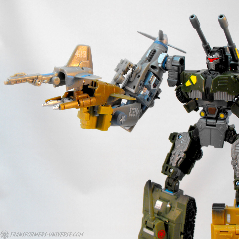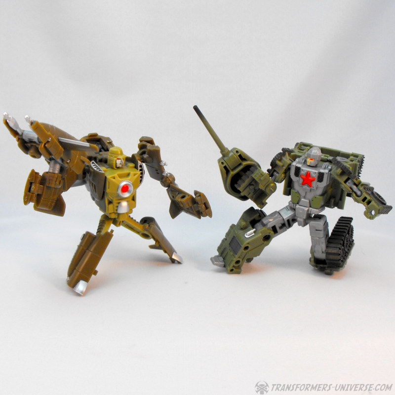 As weapons the two use the tail sections of their jet modes, which unfold barrels. Both also have the fists of the combiner modes along, but can’t really use them in either mode. So bottom line: nice robot modes, though not as good-looking as their tank comrades.