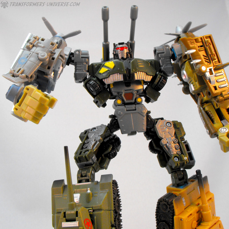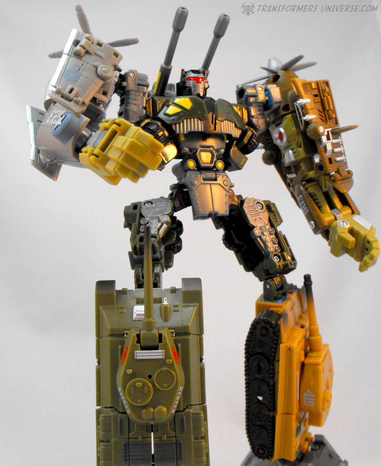 At the end of the day, though, you have the best kind of third-party product here. Four original characters that are not a knock-off of any existing Transformers figure, fully able to stand on their own, but also fully compatible with ‘real’ Transformers, in this case the Power Core Combiners. Nicely done. I didn’t think too much of the Iron Army dudes when they were first announced, but now I’m a fan. Recommended to all fans of combiners in general and military-vehicle Transformers.