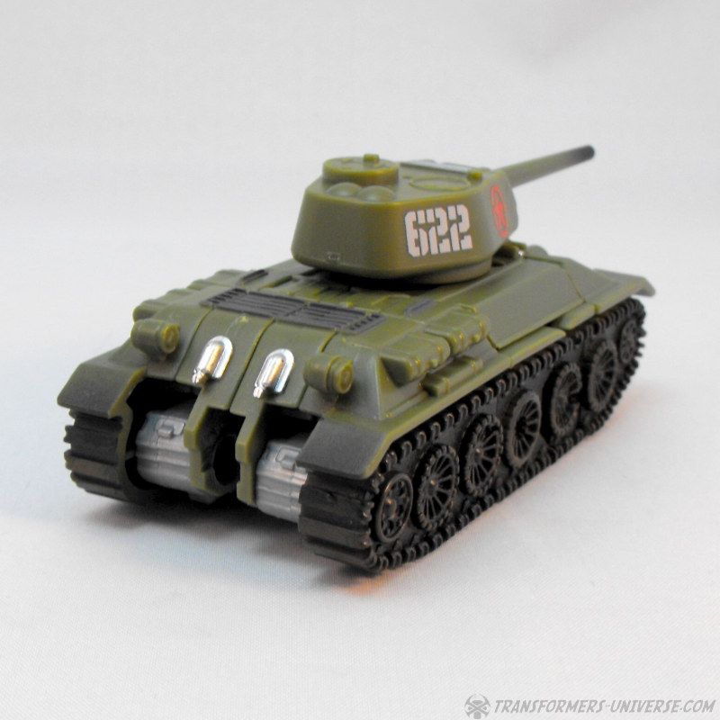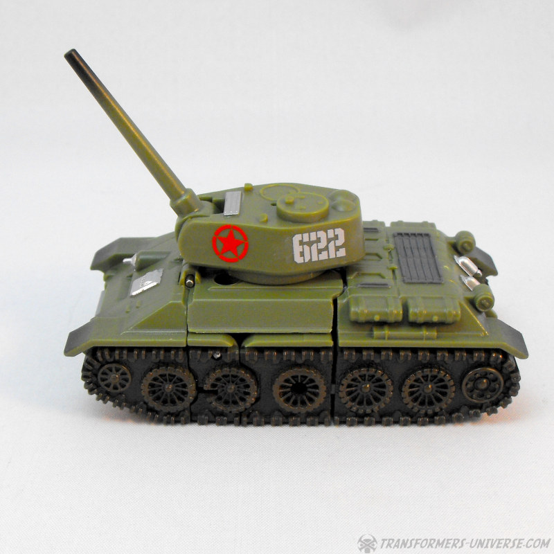 Robot Modes (Tanks): One thing worth mentioning right at the get-go: T-34 and Tiger-1, the two tank robots, are not repaints of each other. They have a very similar design, yes, but their sculpt is very different. T-34 is taller while Tiger-1 is broader, and they have different arms, different chests, and different turrets/weapons, too.