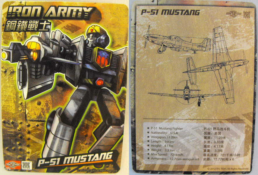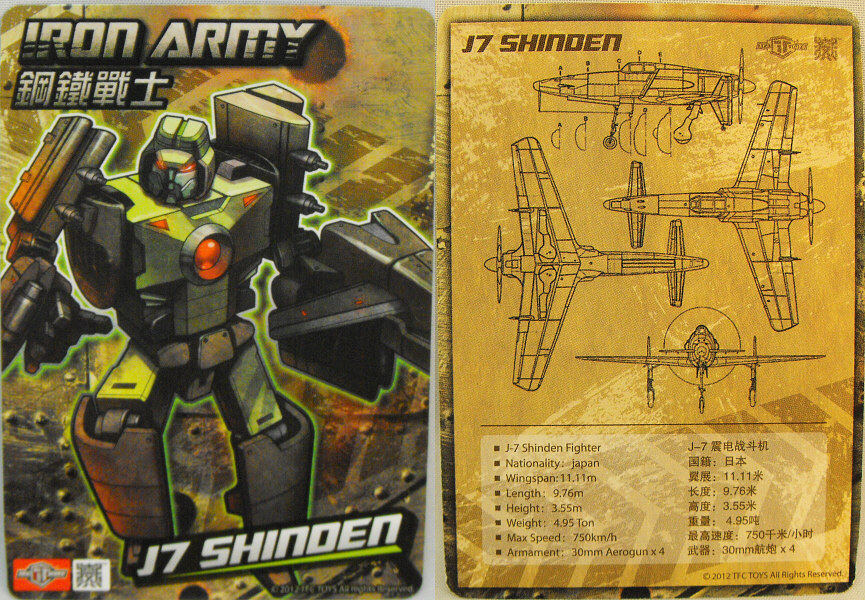 Alternate Modes (Planes): Again, the names give away the alternate mode. But while the P-51 Mustang is one of the most famous airplanes of the WWII era, I don’t think too many people have heard of the J7 Shinden and, to be honest, I was a bit confused at first because I kept turning him the wrong way. Truth is: the Shinden has its propeller in the back. It was an experimental model designed by the Japanese near the end of the war with the intent of having a fighter that could easily be retrofitted with jet engines as they became available. Only two prototypes were ever built, though.