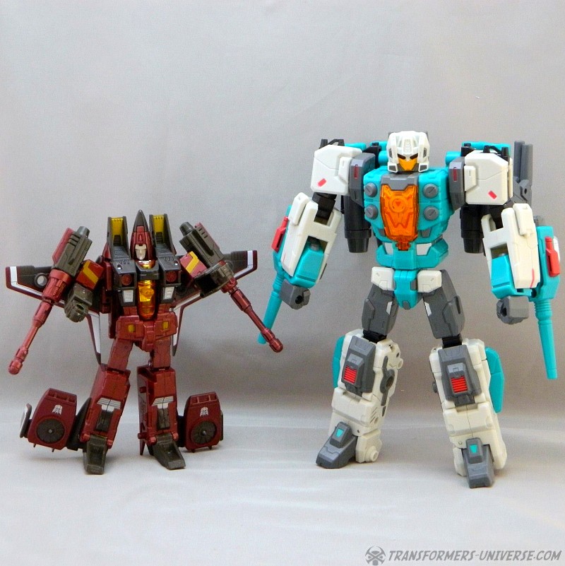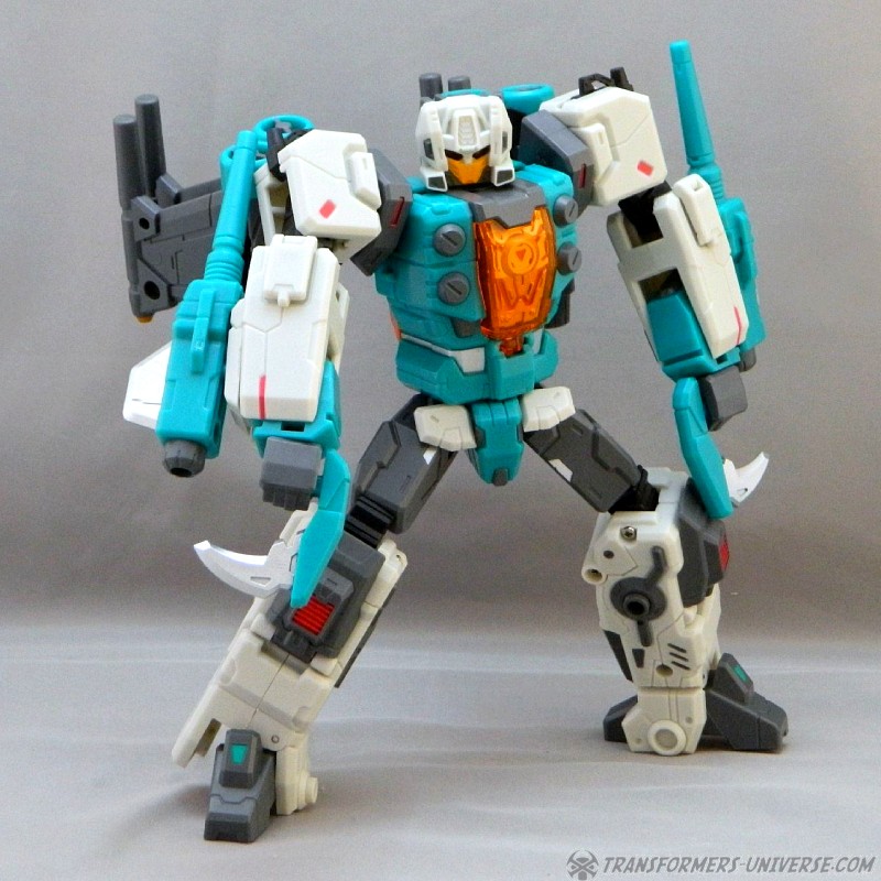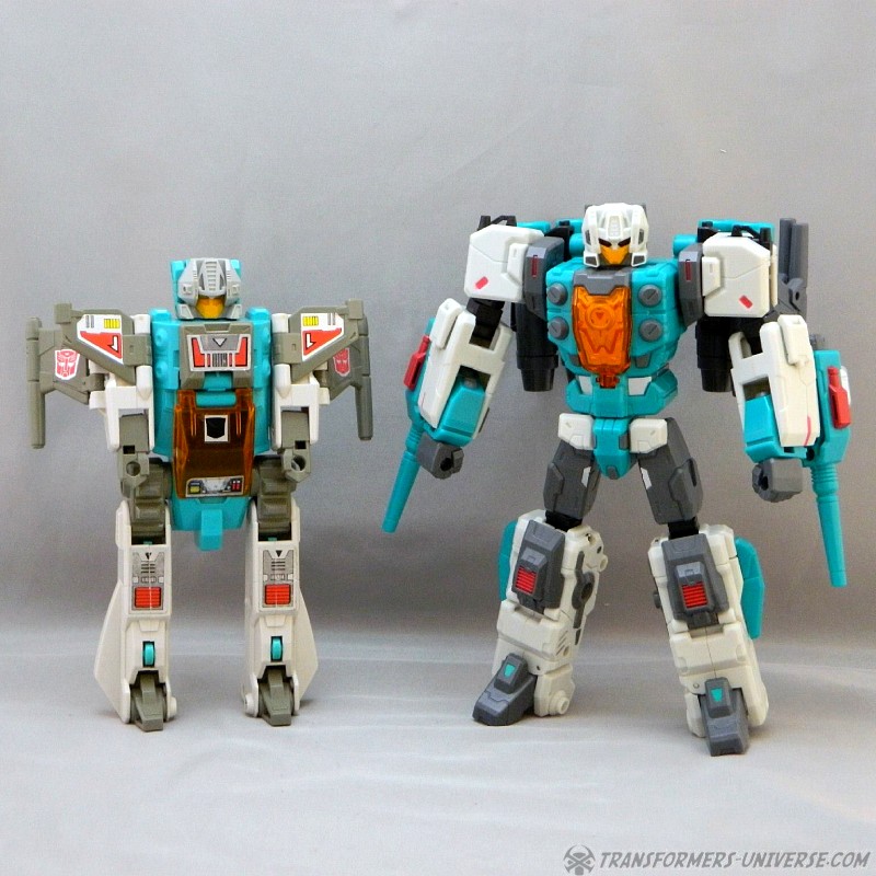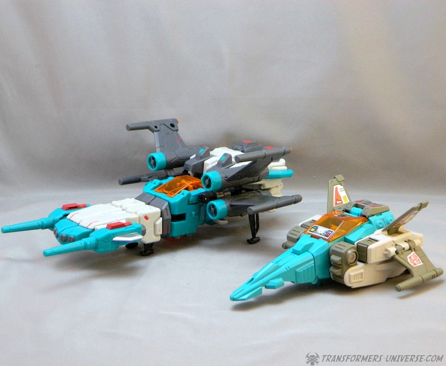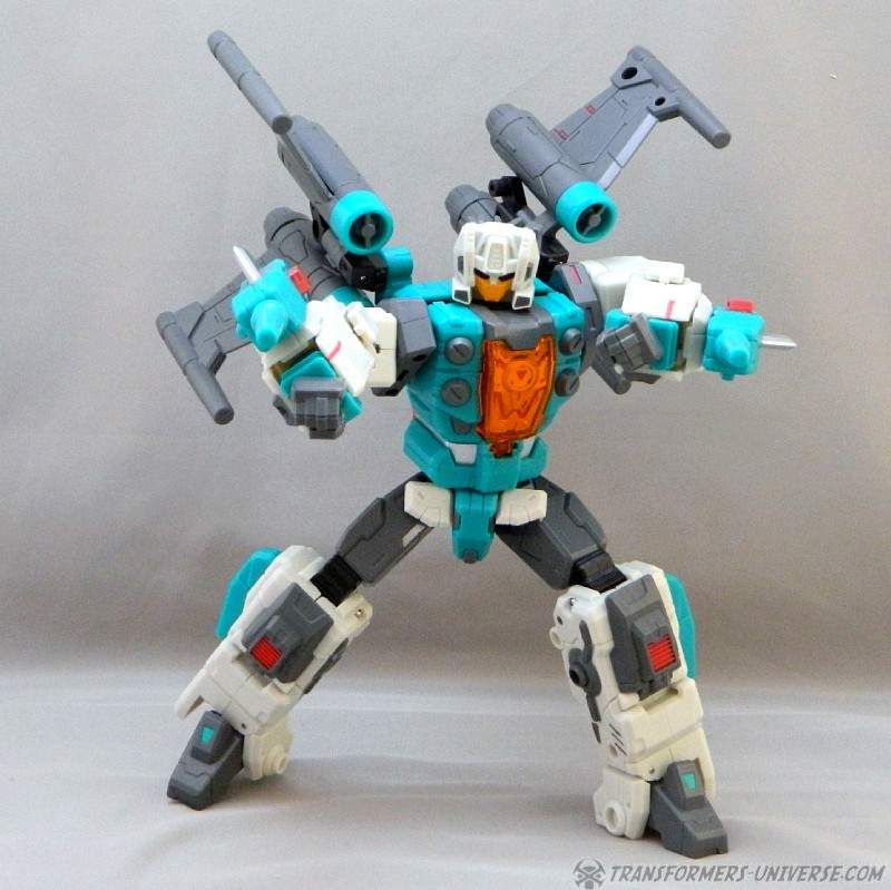 Remarks: At nearly the same time as Fansproject, Toyworld discovered the old G1 Headmaster characters and began creating new versions of them. Enter Brainwave, a third party version of G1 Brainstorm. Of course the original Brainstorm never looked quite that buff and didn't carry wicked-looking knives, either. Brainwave can detach his head, which becomes a separate robot and rides in his jet cockpit, too. Even as Brainwave here was competing with Fansproject Function X-3 Smartrobin, Hasbro would issue an official figure of this character a mere year later in the form of Thrilling 30 Brainstorm.