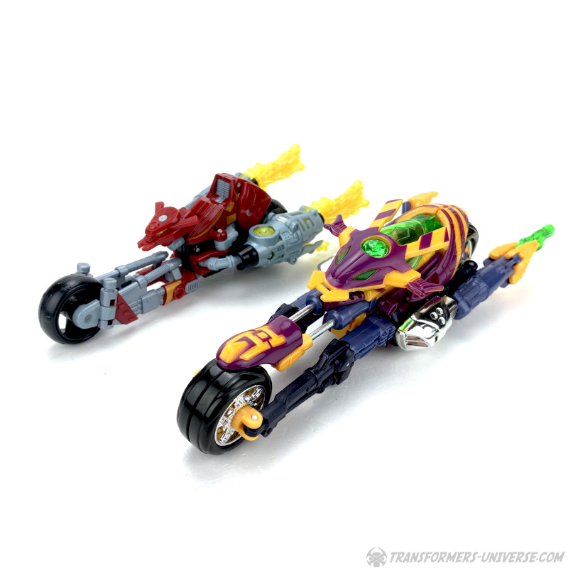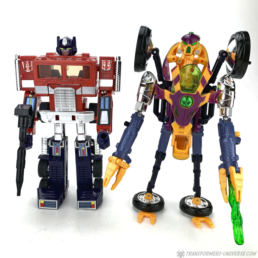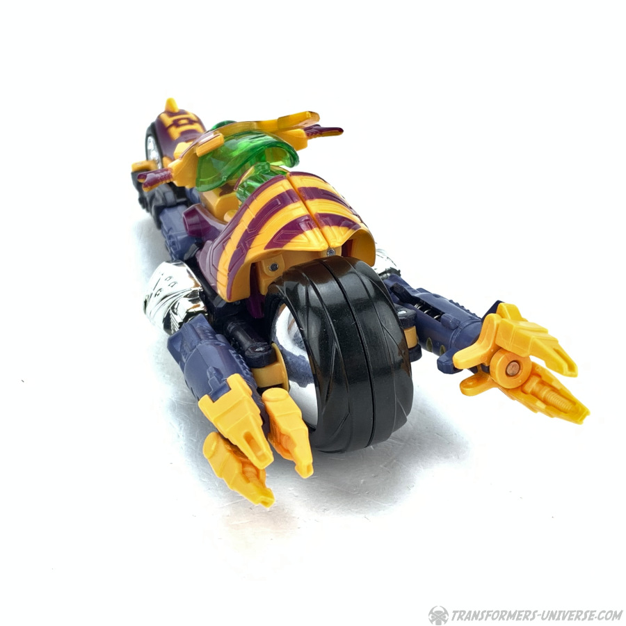Wenn es um Beast Machines Figuren geht, gibt es da oft so eine Henne-und-Ei Diskussion. Ist die TV Serie Schuld, weil sie Charaktere entwarf die stark vom Design der Spielzeuge abwichen, oder sind die Spielzeugdesigner Schuld, weil die Spielzeuge den Seriencharakteren so wenig ähneln? Wie auch immer, auf jeden Fall ähneln viele Beast Machines Charaktere ihren TV-Inkarnationen nicht wirklich und Thrust ist da keine Ausnahme. Man kann zwar ingesamt schon erkennen, dass es der Charakter aus der Serie sein soll, aber in den Details gibt es doch jede Menge Abweichungen. Trotzdem ist Thrust als Figur jetzt nicht schlecht. Ein toller Fahrzeugmodus, gepaart mit einem Robotermodus, der nur ein echtes Problem hat (die Bein-Rad-Sache) und ein insgesamt schöner Look machen ihn insgesamt zu einer guten Figur. Und da er irgendwie ja der Vorgänger für die ganzen Einrad-Roboter ist, die wir dieses Jahr in "Revenge of the Fallen" sehen werden, gibt's noch einen kleinen Bonuspunkt.