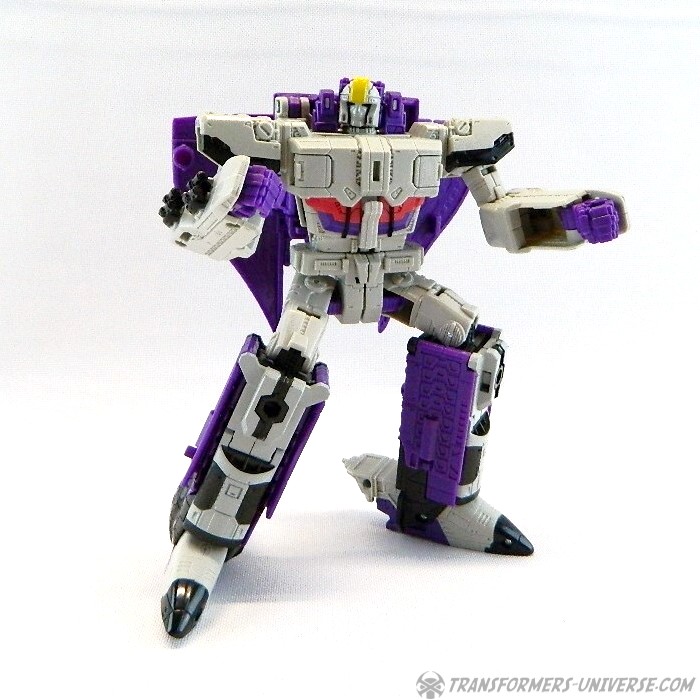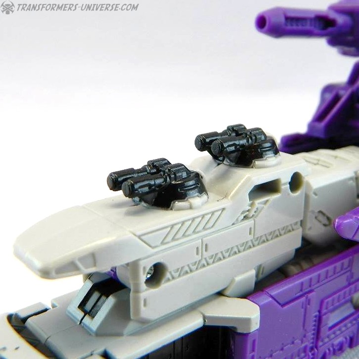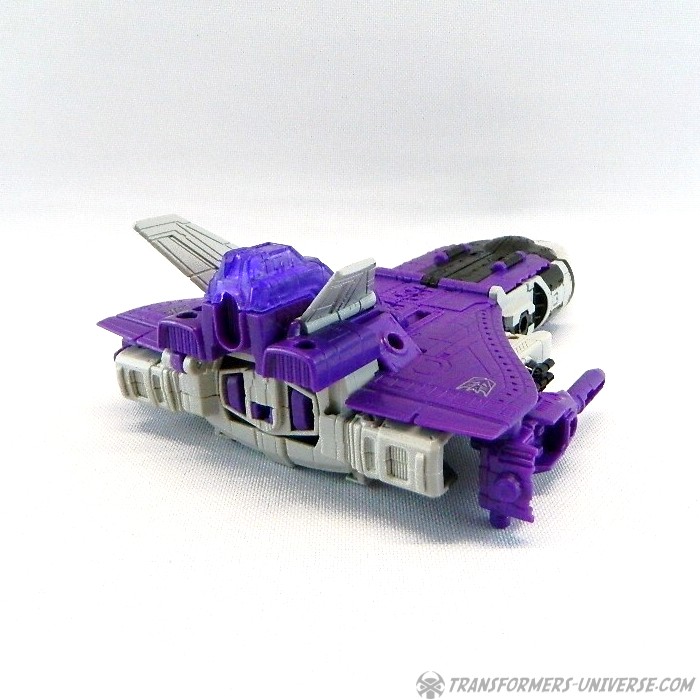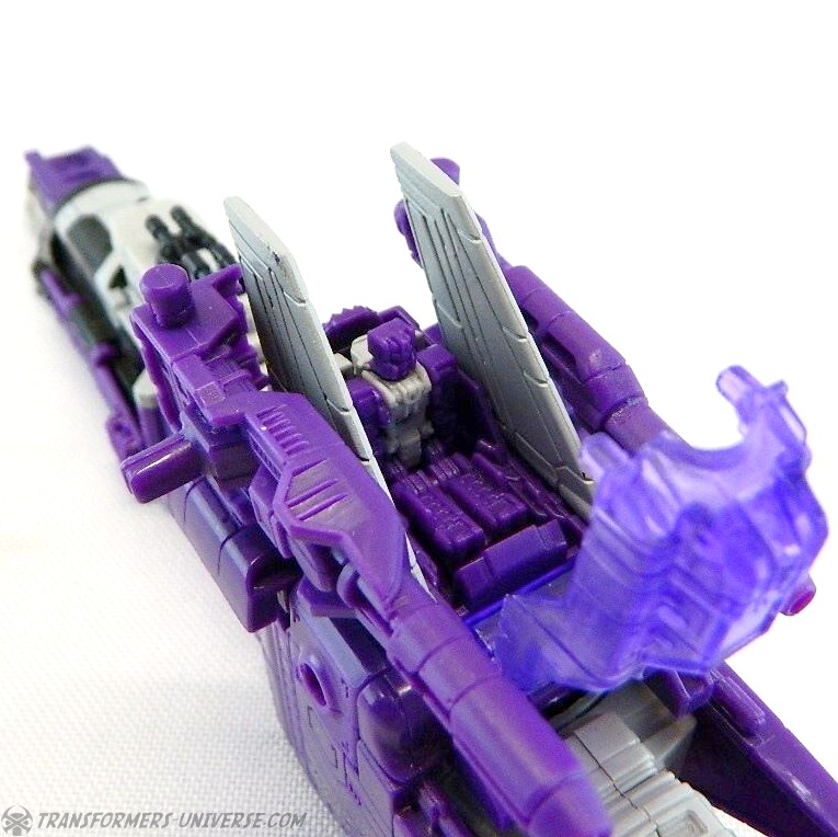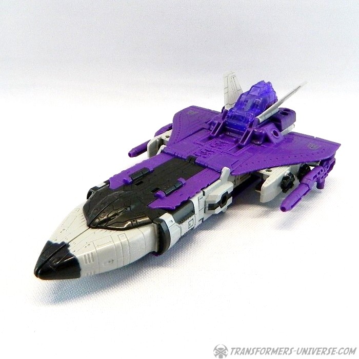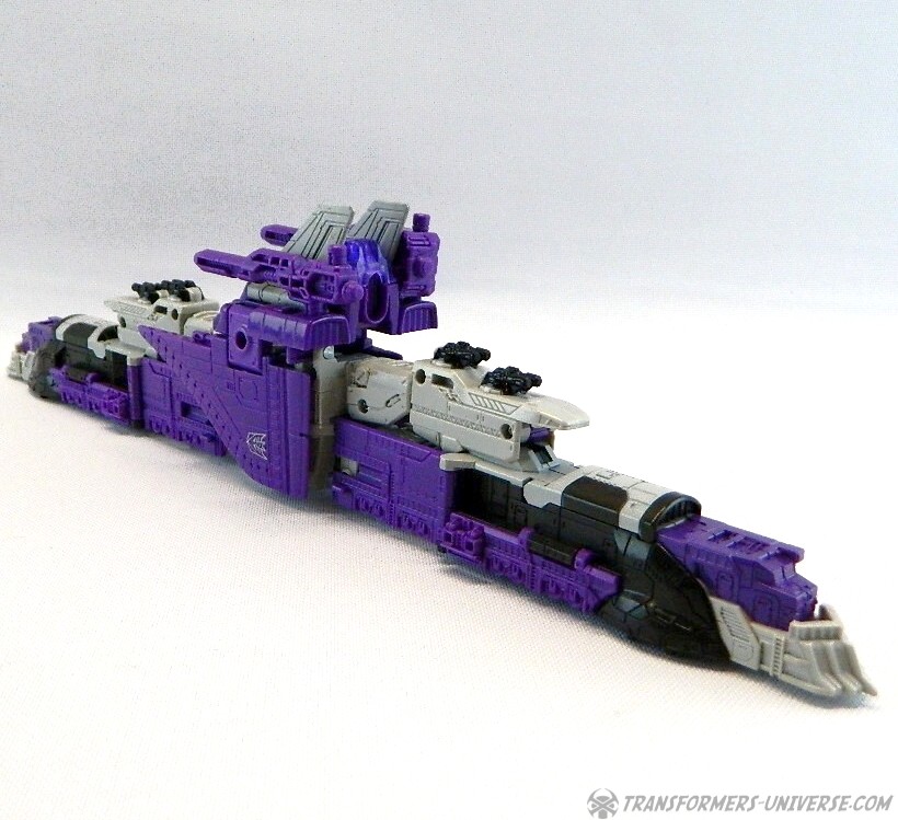 Bemerkungen: Astrotrain nutzt die gleiche Gussform wie Titans Return Sentinel Prime, den ich bereits rezensiert habe. Natürlich wurde die Figur aber ursprünglich als Astrotrain designt. Astrotrain transformiert vom Roboter zum Shuttle und zum futuristischen Zug. Wie alle Titans Return Figuren Deluxe Klasse und größer ist er ein Headmaster. Sein Kopf ist abnehmbar und wird zum Titan Master Darkmoon (benannt nach dem Film?). Die Farben der Figur basieren auf dem G1 Spielzeug, während die Legends version dieser Figur sich die Cartoon Farben zum Vorbild nahm.