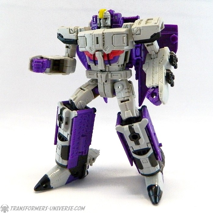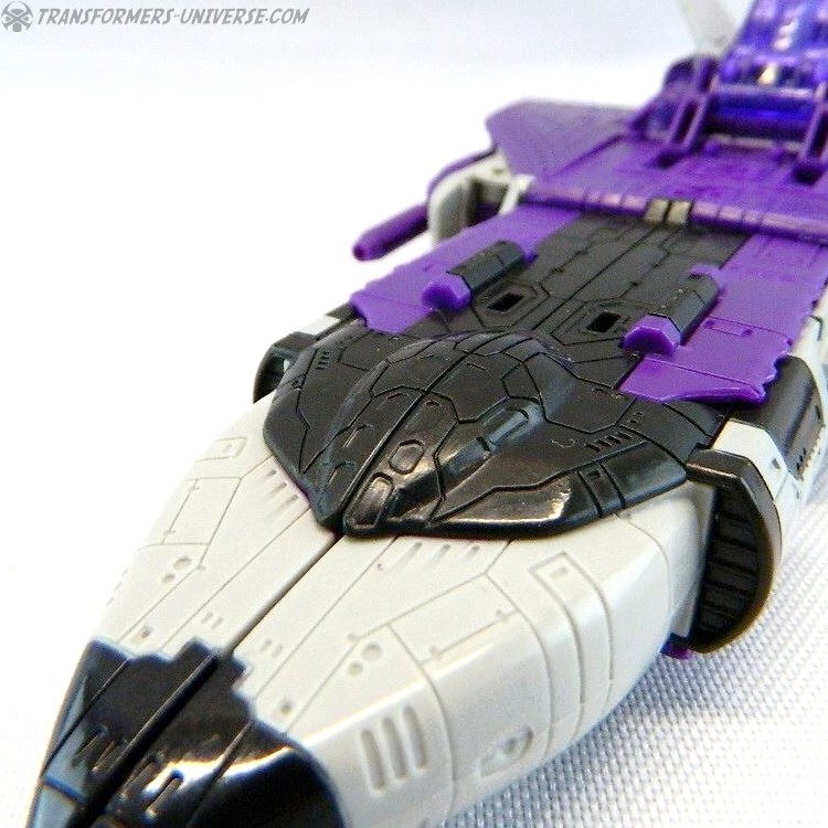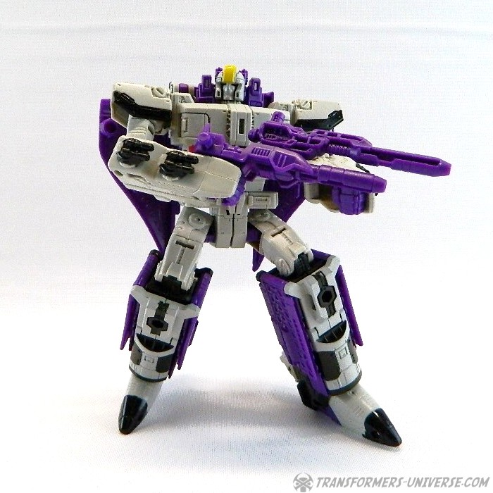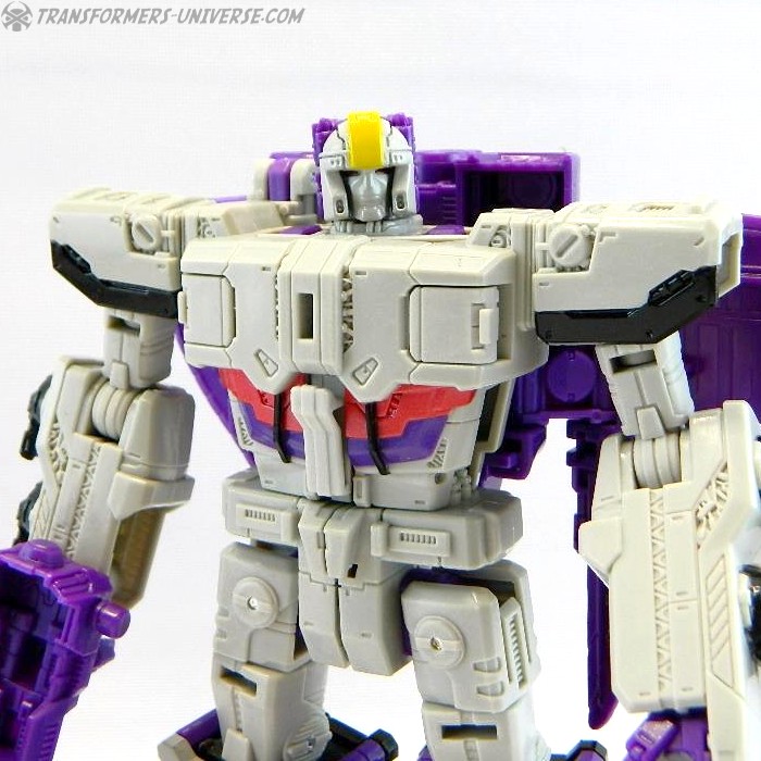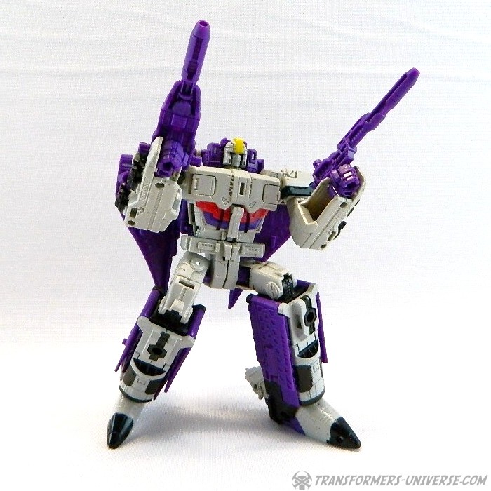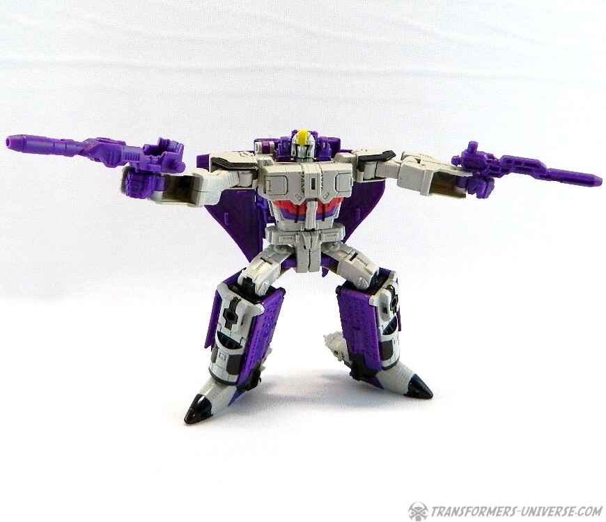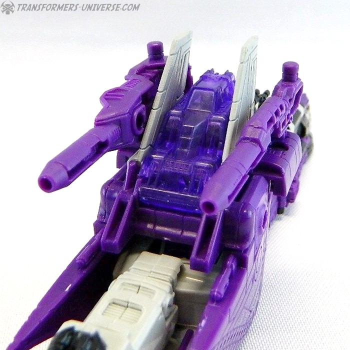 Bemerkungen: Astrotrain nutzt die gleiche Gussform wie Titans Return Sentinel Prime, den ich bereits rezensiert habe. Natürlich wurde die Figur aber ursprünglich als Astrotrain designt. Astrotrain transformiert vom Roboter zum Shuttle und zum futuristischen Zug. Wie alle Titans Return Figuren Deluxe Klasse und größer ist er ein Headmaster. Sein Kopf ist abnehmbar und wird zum Titan Master Darkmoon (benannt nach dem Film?). Die Farben der Figur basieren auf dem G1 Spielzeug, während die Legends version dieser Figur sich die Cartoon Farben zum Vorbild nahm.