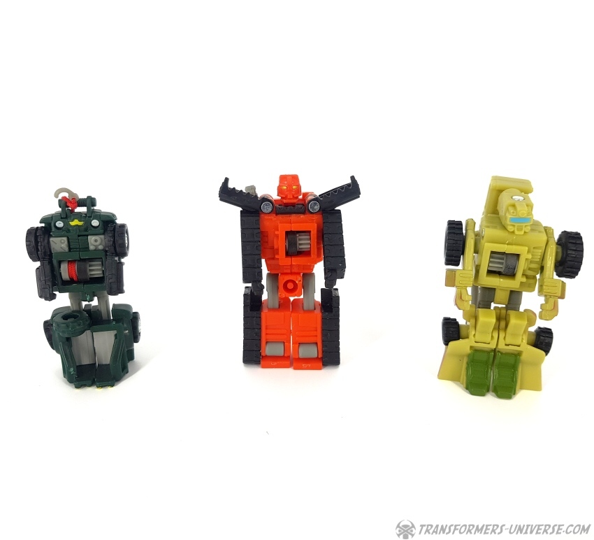 Bemerkungen: Das Micron Legend Adventure Team, bestehend aus Junk, Spike & Winch, wurde von Hasbro unter dem gleichen Namen für die Armada Reihe rausgebracht, allerdings erhielten die einzelnen Mini-Cons neue Namen, nämlich Iceberg, Dune Runner, und Ransack. Ich hatte zwar keines der beiden Teams je selbst in Händen, aber rezensierte einige ihrer Repaints, nämlich Armorhide, Ironhide und Cliffjumper. Alle drei Teammitglieder besitzen Gimmicks, unabhängig von ihrer Fähigkeit, bei den größeren Armada Figuren via Powerlinx deren Gimmicks auszulösen.