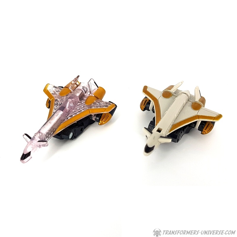 Bemerkungen: Japanische Transformers Fans lieben Mini-Cons (oder Microns, genauer gesagt), somit ist es wenig überraschend, dass es in der Micron Legends Reihe - Takaras Version von Transformers Armada - sogar noch mehr Mini-Cons gibt als in ihrem westlichen Gegenstück. Und eines der beliebtesten Teams sind diese Jungs hier, die ursprünglich als das Armada Air Defense Team rauskamen, bevor sie ein "böses" Repaint in Form des Armada Air Assault Teams bekamen. Beide findet Ihr bereits hier auf der Seite, genau wie das X-Dimension Air Defense Team. Hier also nichts wirklich Neues, einfach drei kleine Mini-Cons, die zu Jets transformieren und sich zu einem großen Schwert kombinieren, hier als Dark Saber bekannt. Der Hauptunterschied zwischen der Hasbro Armada und der Takara Micron Legends Version ist, dass Takara hier transparente Teile eingesetzt hat, plus ein paar minimale Farbdifferenzen.