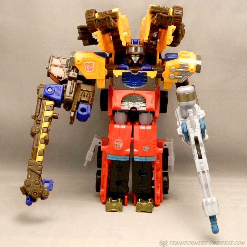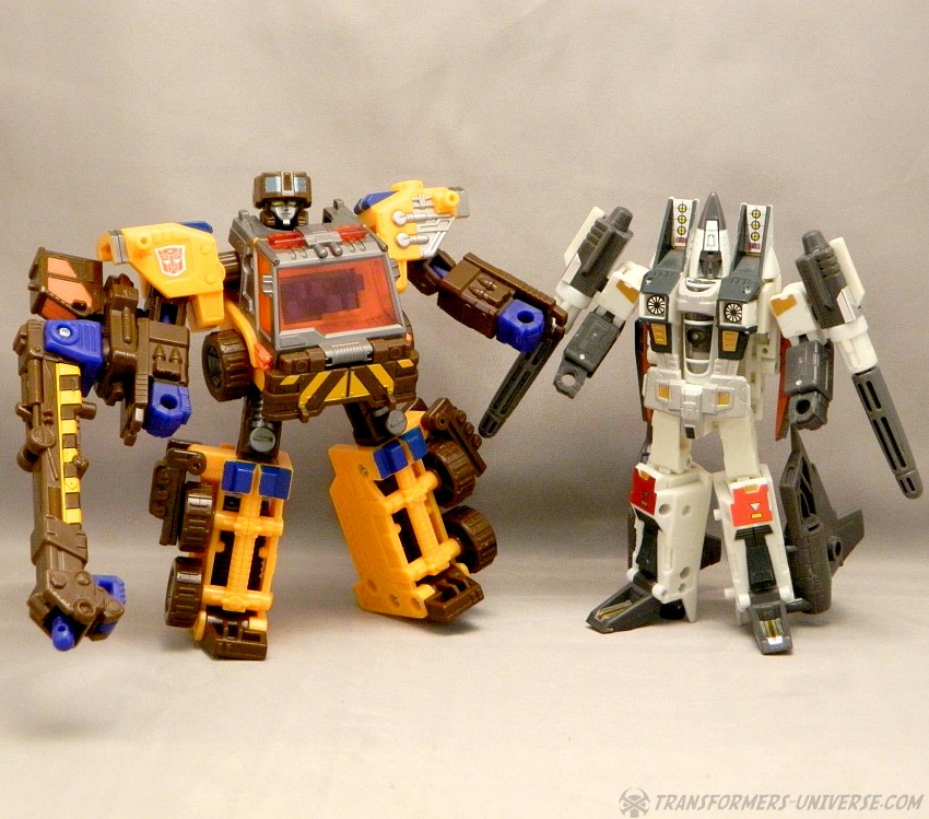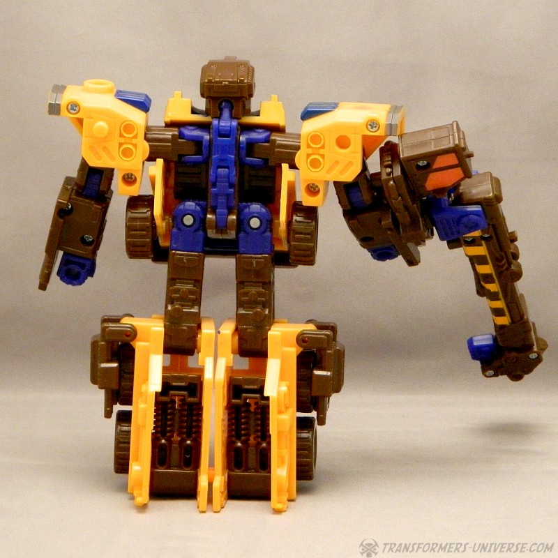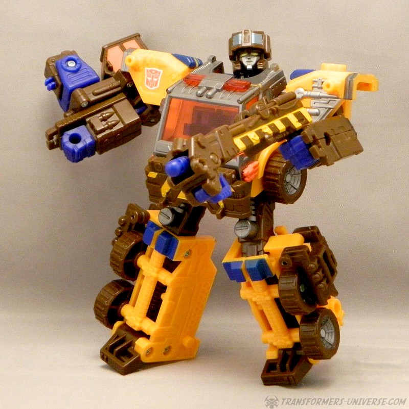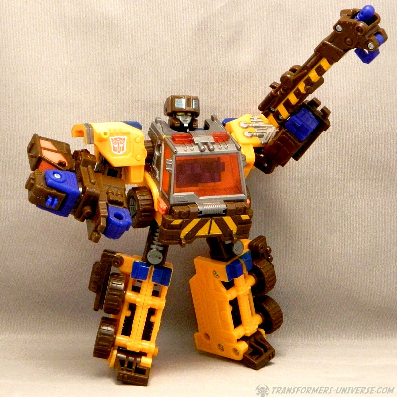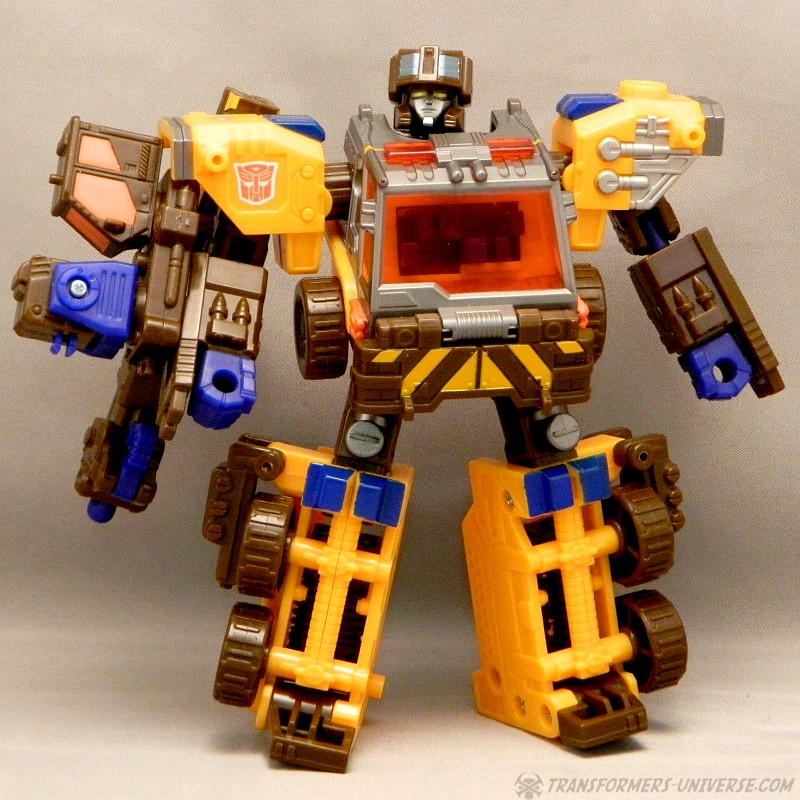 Bemerkungen: Roadblock ist ein Retool von Energon Inferno mit neuem Kopf und einem Kran am Arm anstatt eines Wasserwerfers. Ansonsten sind sie die gleiche Figur, nur mit neuen Farben, und immer noch in der Lage mit so ziemlich jedem Autobot der Deluxe- oder Voyager-Klasse in Energon oder Superlink im Powerlinx zu kombinieren. Im Cartoon war Roadblock lediglich die neue Form von Inferno. Nachdem er sich selbst geopfert hatte, anstatt Megatrons Versuch einer Reprogrammierung zum Opfer zu fallen, kehrte Inferno etwas später einfach in einem neuen Körper zurück, keine Nebenwirkungen oder bleibende Schäden. Leider nur ein Beispiel, wie der Energon Cartoon Story-mäßig wieder und wieder daneben griff.