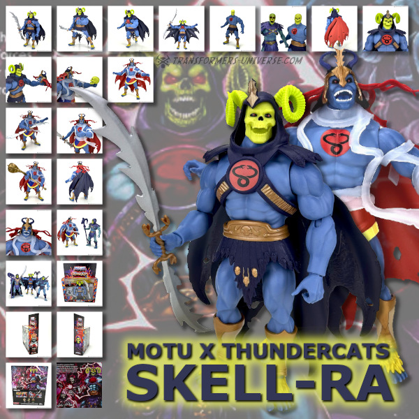 Prelude: Let’s see: a main hero with a sword and a transformation catchphrase, check! Near-dead looking evil sorcerer dude with blue skin as main villain, check! Giant themed castle as good guy headquarters, check! Eerie evil fortress for the bad guys, check! I think it fits, don’t you? Here is my first foray into the Masters of the Universe X Thundercats crossover, featuring Skell-Ra, the unholy fusion of Skeletor and Mumm-Ra. I’d have gone with Mummitor, though. Let’s say Hooooo!