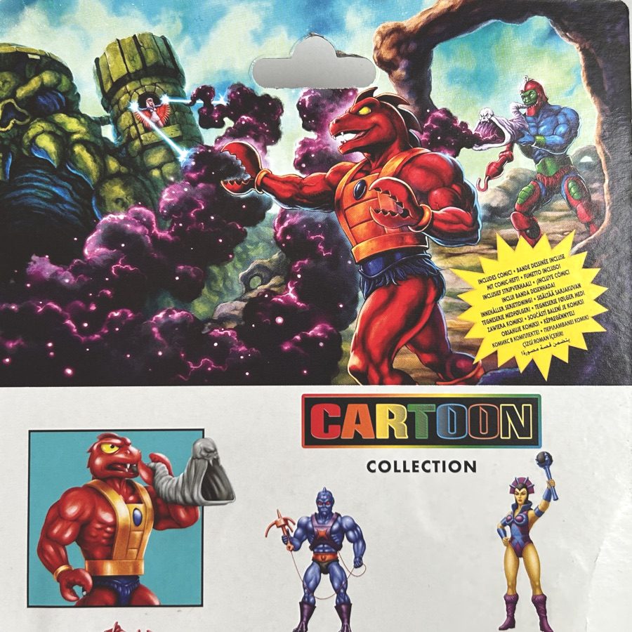 Review: In just about every toy-based cartoon series from the 1980s, you have some toys that have a strong resemblance to their animation character, and some that, well, do not. For the Masters of the Universe toy line, the cartoon character that differed most wildly from his toy counterpart might well be Clawful (still one of the most awesome bad guy names ever conceived). The reasons are probably symmetry (the toy had different-sized claws, but making them the same size made it easy to simply mirror existing frames in the cartoon) and that the cartoon character was based on an early prototype of the toy. Or maybe they simply wanted to make the character in the kids’ cartoon look less menacing, who knows.