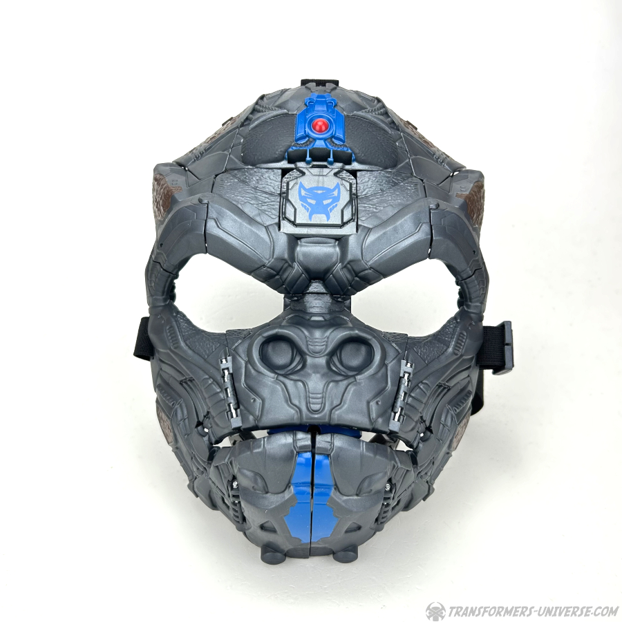 The face isn’t really a great match to either the CGI model of the movie or the original Beast Wars gorilla (neither toy nor CGI model), but it’s clearly a techno-organic gorilla, so that suffices. The mask is sized of a kid’s head, but it can also be worn by an adult if he doesn’t mind his chin sticking out a bit below (see 8th picture in in the gallery). The straps are long enough for big-headed adults, too.