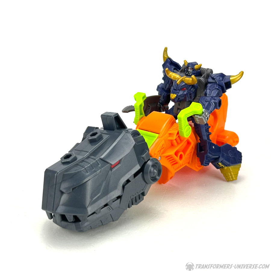 Remarks: In the beginning of the Cyberworld series, Grimlock – along with Snarl – is doing his own thing in the jungle area of Cyberworld, having agreed to a non-aggression pact with Megatron. Reluctantly, he joins forces with Optimus and the other Autobots in their plan to get past Scorponok to find a shuttle so they can leave this world. He also speaks with a Russian accent, likes to call Optimus “Little Prime” (to be fair, he is much bigger than Optimus), and has displayed almost every single play feature this toy has in the cartoon, too. Only thing we’ve yet to see is the Dino Bike.