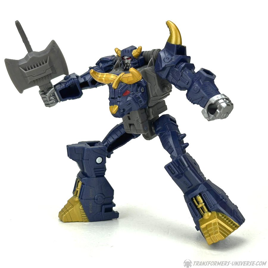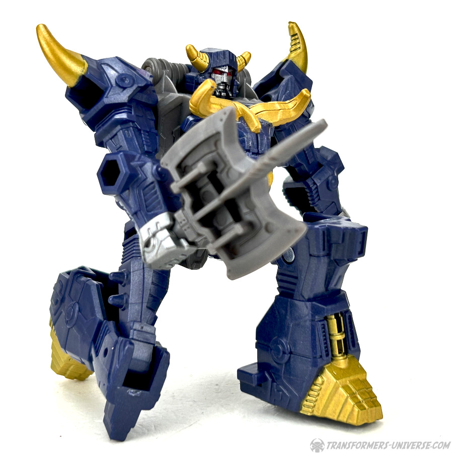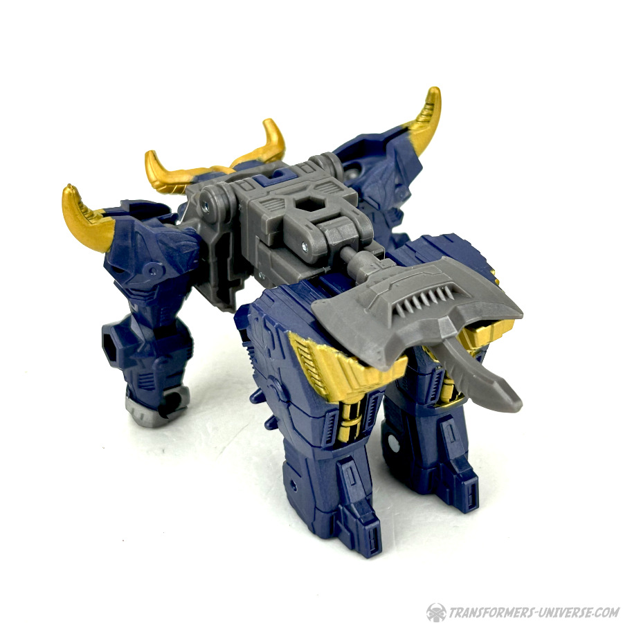 Now to be honest, it’s not really a great beast mode. The front legs are clearly robot arms unless you look at them from the side, and overall the bull doesn’t do much to disguise that it’s actually a robot on all fours. Still, the detailing is still pretty great here, too, and the blockiness of this beast mode kind of brings me back to the latter days of Generation 1, where we had blocky, colorful robot beasts aplenty. Just not nearly as nicely detailed.