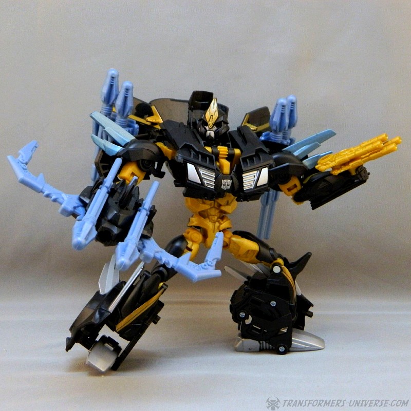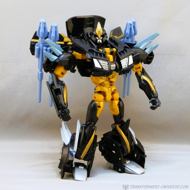 Remarks: In the early 2010s the Bumblebee proliferation was in full swing to the point where we had a ratio of Bumblebee vs. all other characters of at least 1:3. Case in point Beast Hunters Night Shadow Bumblebee, a repaint of the first Beast Hunters Bumblebee, who was a retool of the Robots in Disguise Bumblebee, whose repaint Prime Hot Shot I actually reviewed once upon a time. Yeah, there were a lot of Bumblebee figures back in those days.