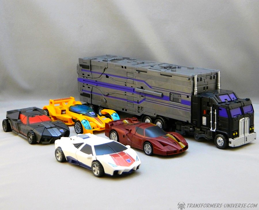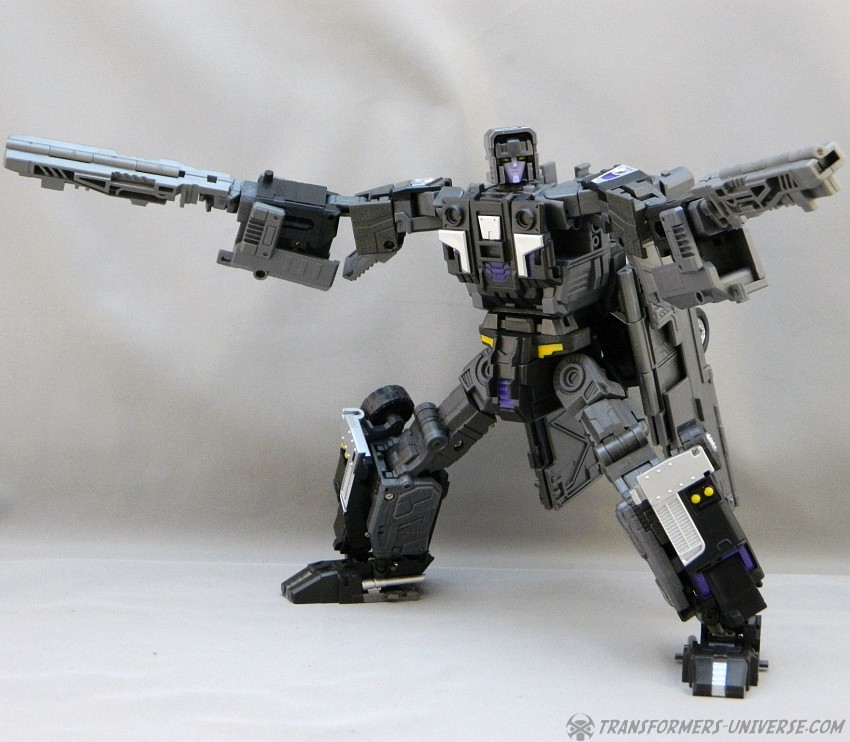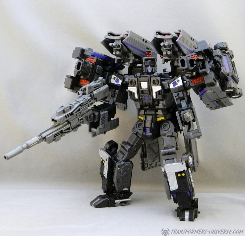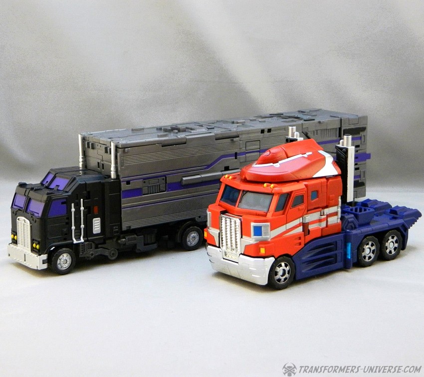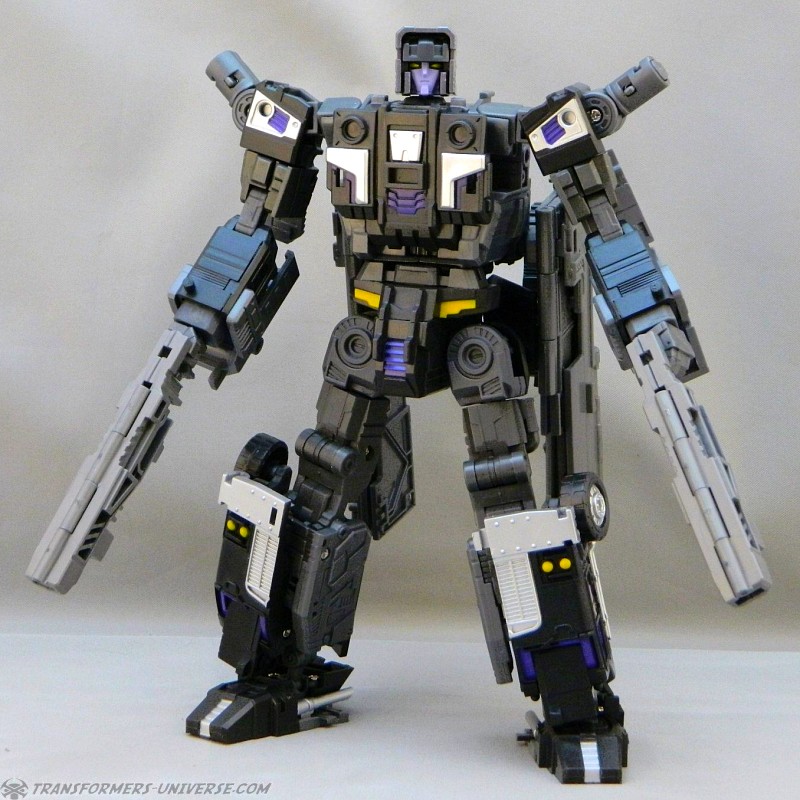 Remarks: The final figure in Fansproject's Third Party version of the Stunticons is Diesel aka Motormaster, and I'd like to add an aka Kevin Nash / Big Daddy Cool, just because I'm a wrestling fan, too. Diesel transforms from robot to truck (with trailer) and becomes the torso of the Intimidator combiner (aka Menasor).