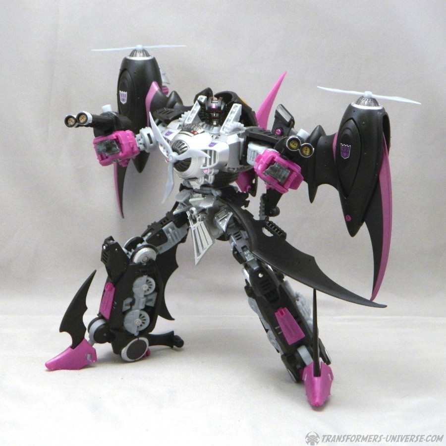 Remarks: Way back in 2006, IDW Comics released an out-of-continuity min-series called Hearts of Steel, set in the late 1800s. The Transformers, having been on Earth since the Ice Age, awoke and scanned the latest in high-tech machines, meaning trains, zeppelins, and biplanes. The series was later folded into the main IDW continuity in a very complicated way that would take too long to explain here. Anyway, a few years later, seeing as Hasbro was making no move to actually produce any figures for this series, Mastermind Creations, a brand-new third party figure, launched their Knight Morpher series, bringing a few of these figures to life. The first was Mastermind Creations Knight Morpher Commander and a bit later the Seekers came out as well, Warper here among them. He's meant to be Skywarp, of course, but could not be called that for legal reasons, of course. Still, my buddy James got him back then and was kind enough to send me these pics.