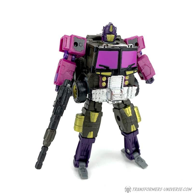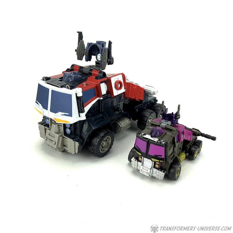 Nexus Omnicron: Nexus Omnicron is a scaled down version of Energon Optimus Prime with a new Shattered-Glass / Nemesis inspired paintjob. Nexus stands at about Scout-Class scale now, so he probably fits in with Legends-scaled third party toys (I have none, so I cannot really say for sure). Apart from size and paint, the toy is practically identical with the official Energon figure except in some small details. The Super-Mode helmet on Nexus’ back can’t fold out into an antenna-like thing and there are no electronics in the torso, unsurprisingly.