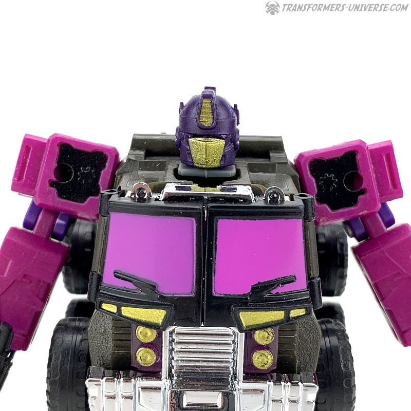 Remarks: This toy here, a loan from my buddy Fuchs Geronimo, took me by surprise, I must admit. Never heard of it before, never saw it anywhere. The company(?) that made it, Astron, has apparently never produced anything else that I could find. The toy itself is really just a scaled-down knock-off, but there is some (minimal) new tooling and an original paintjob, too. It’s half Shattered Glass, half Nemesis, and the result is kind of its own thing in a weird way. And in case you were wondering, to the best of my knowledge there has never been a Non-Nemesis Edition of this toy, either.
