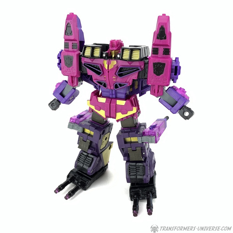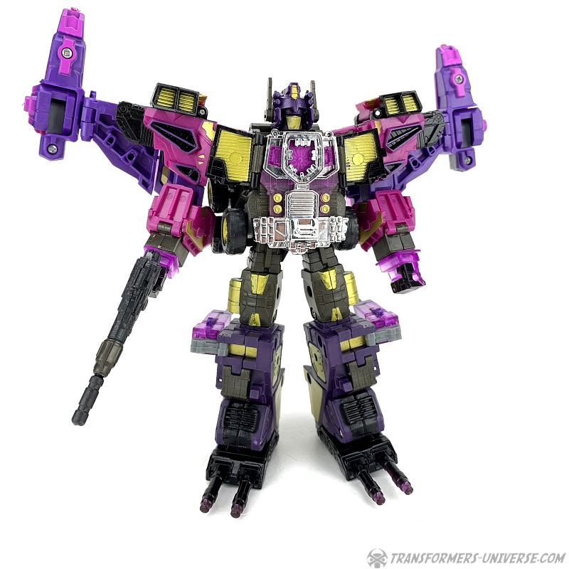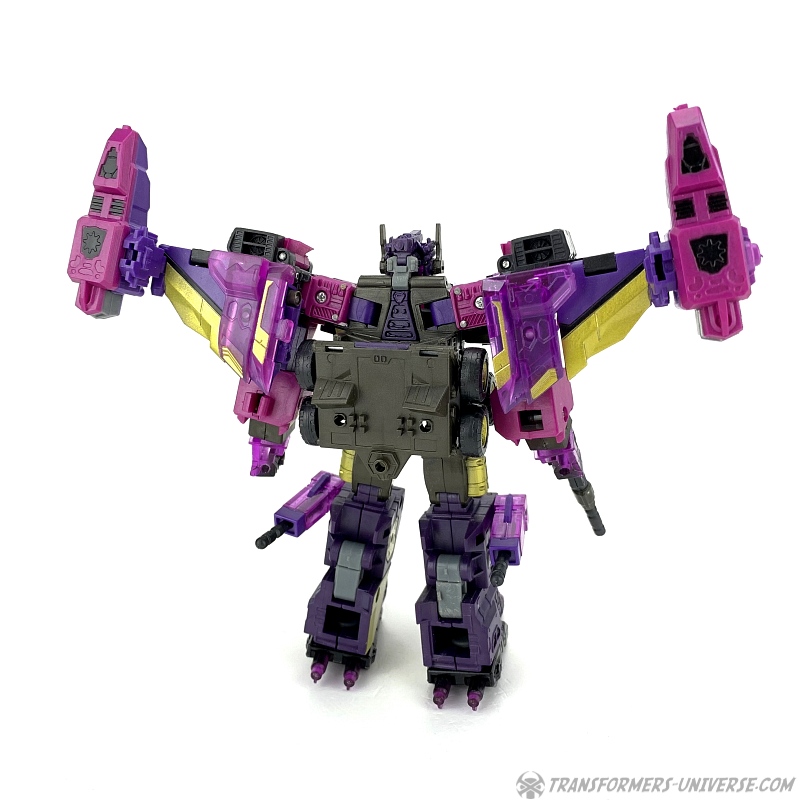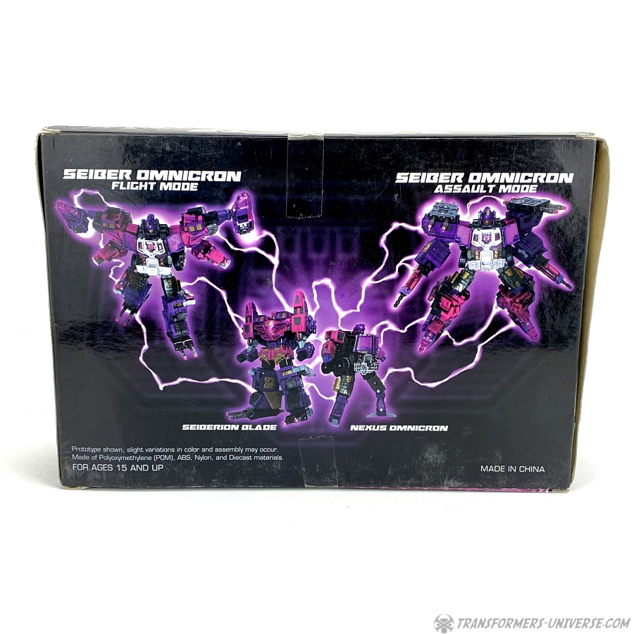 Seiber Omnicron: Much like it was with the original figures, the main attraction of these two here is that they can combine in two different configurations. Nexus Omnicron becomes the torso, Seiberion Blade splits into the four limbs. There is the Flight Mode version, where the combiner has huge wings and gun feet, and the Assault Mode, where the combiner has double-shoulder guns and missile launcher arms. Once again, no real difference to the original figures apart from size and color scheme.