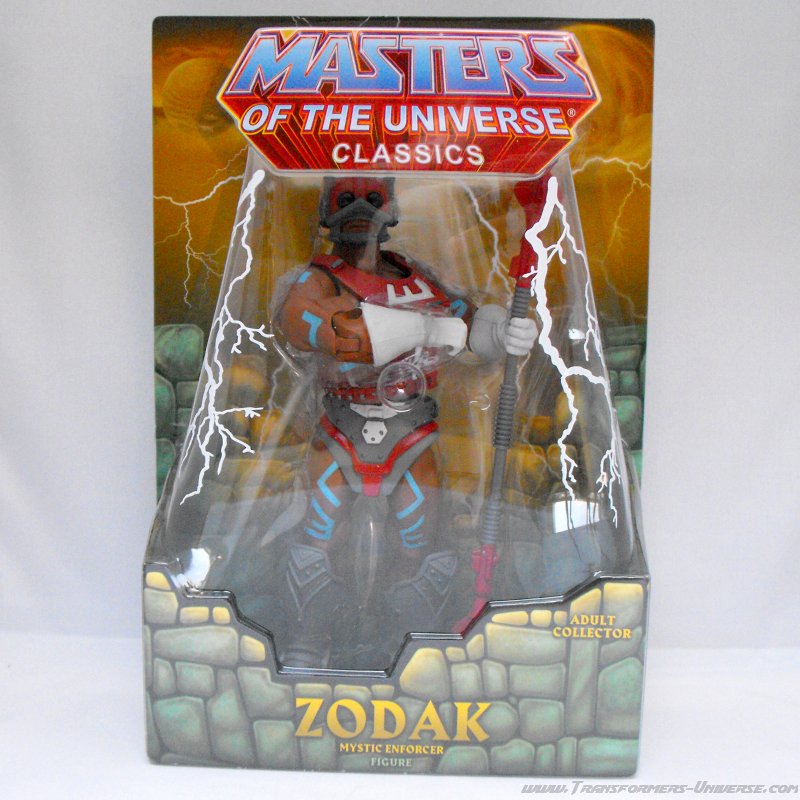 Review: In der ursprünglichen Masters of the Universe Reihe war Zodac (mit "C" am Ende) ein nur selten in Erscheinung tretender Besucher aus dem All. Er spielte allerdings im 200X Cartoon eine deutlich größere Rolle, denn hier war Zodak (jetzt mit "K") am Kampf gegen die Snake-Men beteiligt. Für die Classics Reihe entschied man sich, daraus zwei separate Charaktere zu machen, somit ist diese Figur hier ganz klar der Charakter aus der 200X Serie, ausgestattet mit der Stimme von Christopher Judge alias Teal'C aus Stargate.