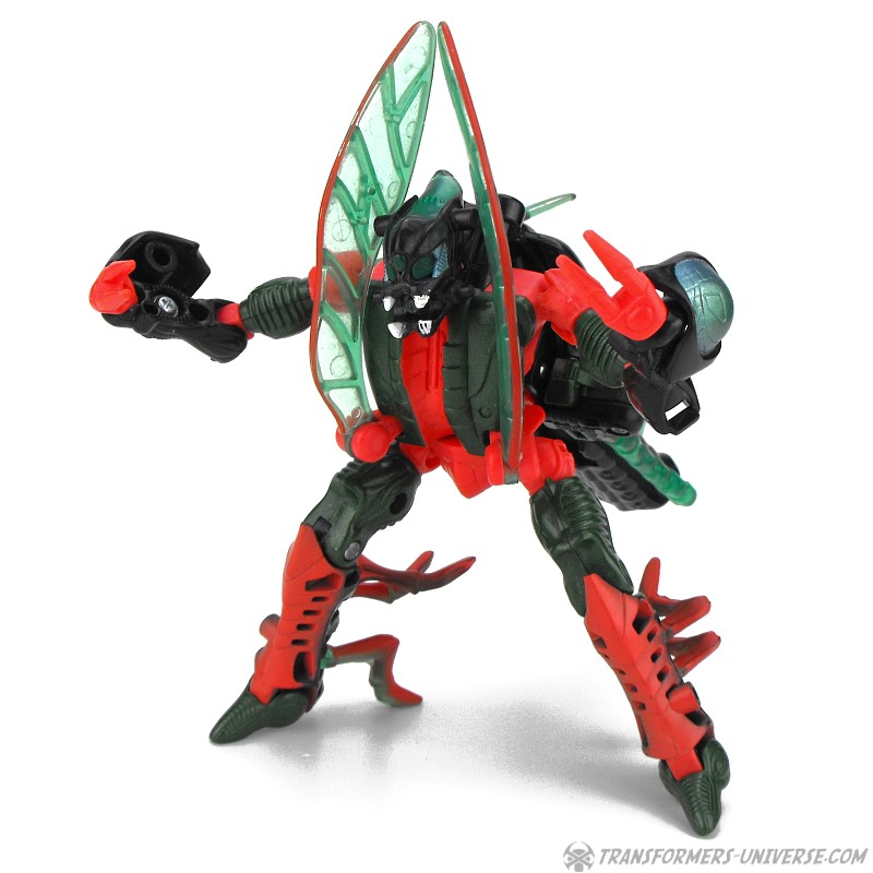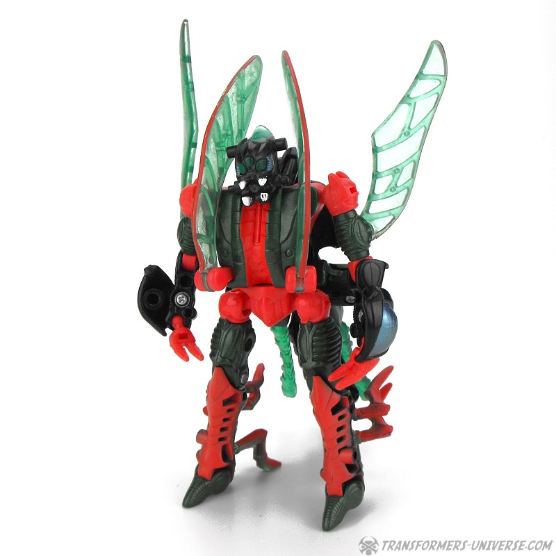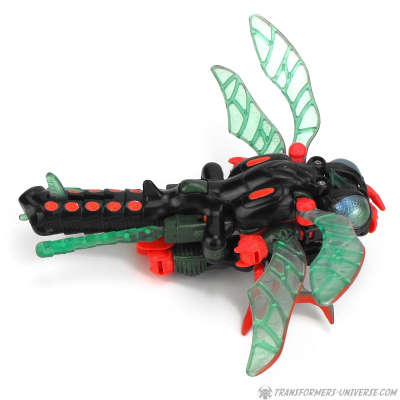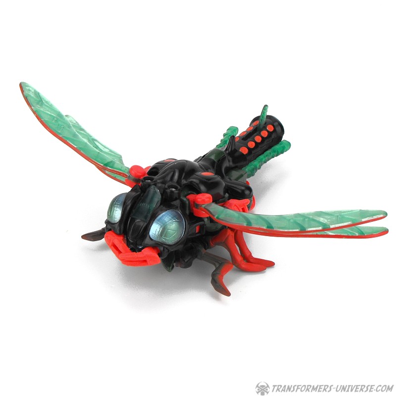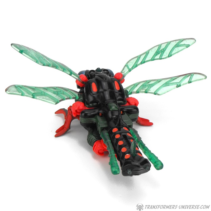 Biestmodus: Jetstorm wird zu einer Libelle. Viel kann ich hierzu nicht sagen. Sie sieht gut aus, nur das vorderste Beinpaar wirkt ein wenig daneben. Macht aber nichts. In diesem Modus kann Jetstorm seine beiden Raketen tatsächlich benutzen, er klappt sie aus dem langen Schwanz nach vorne um sie auf Feinde abzufeuern. Alles in allem ein guter Biestmodus.