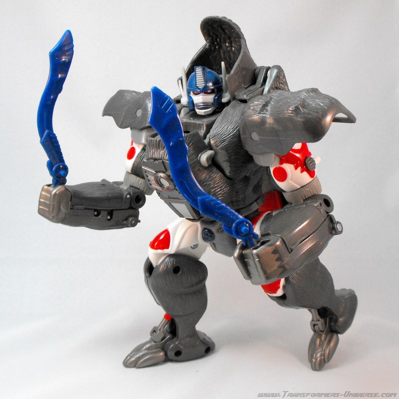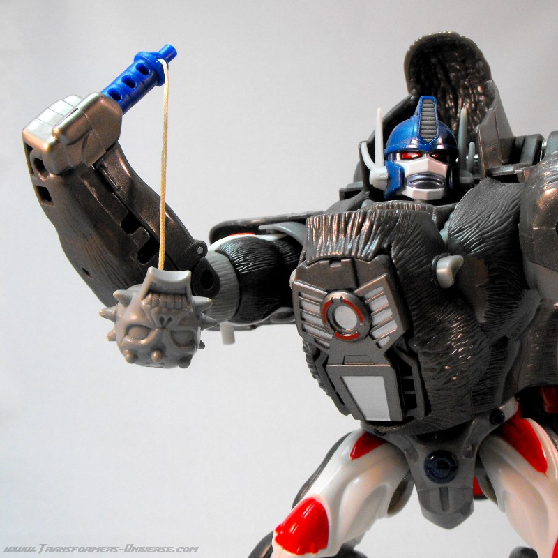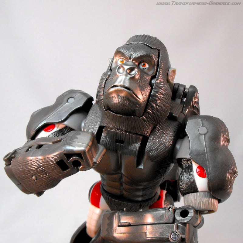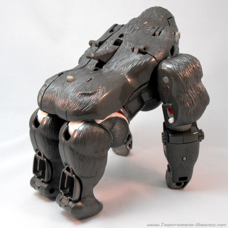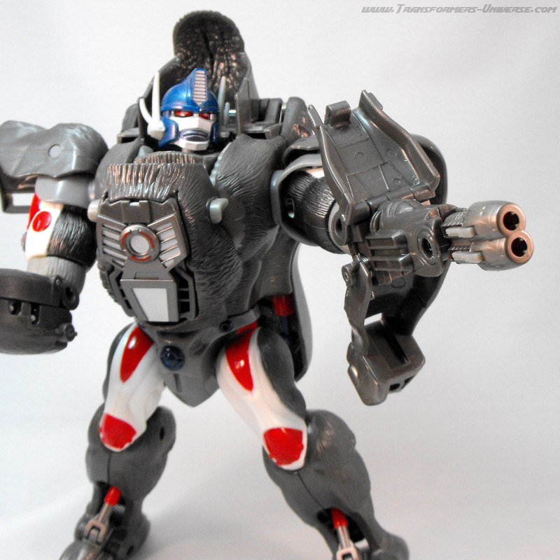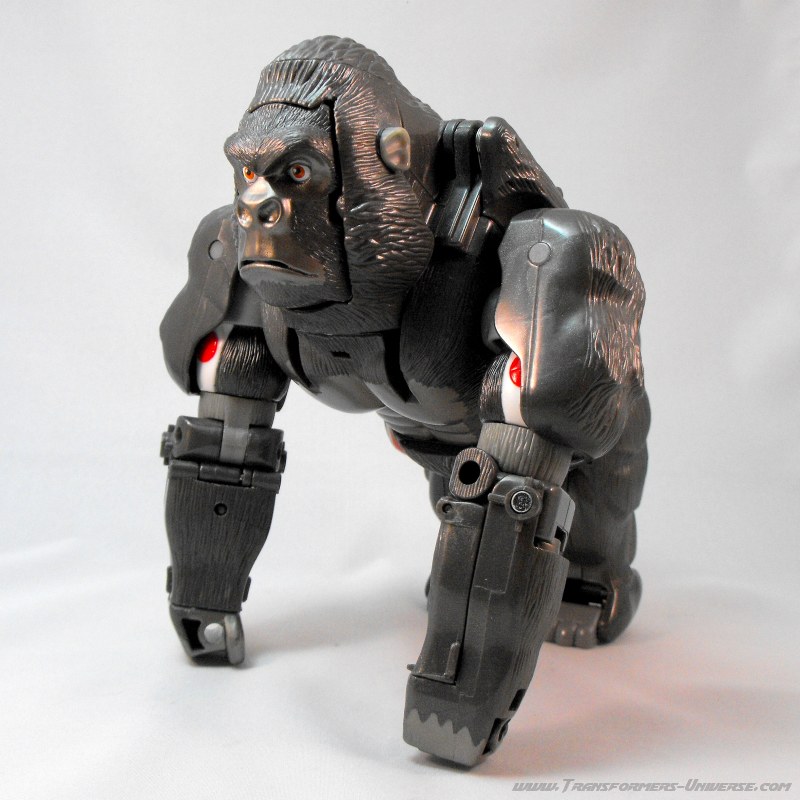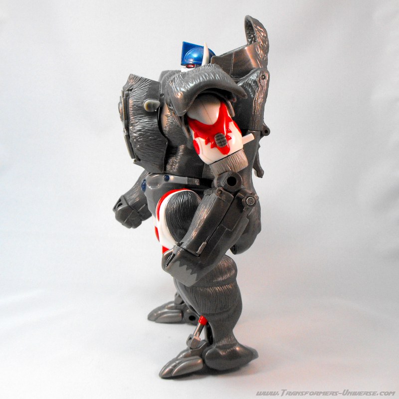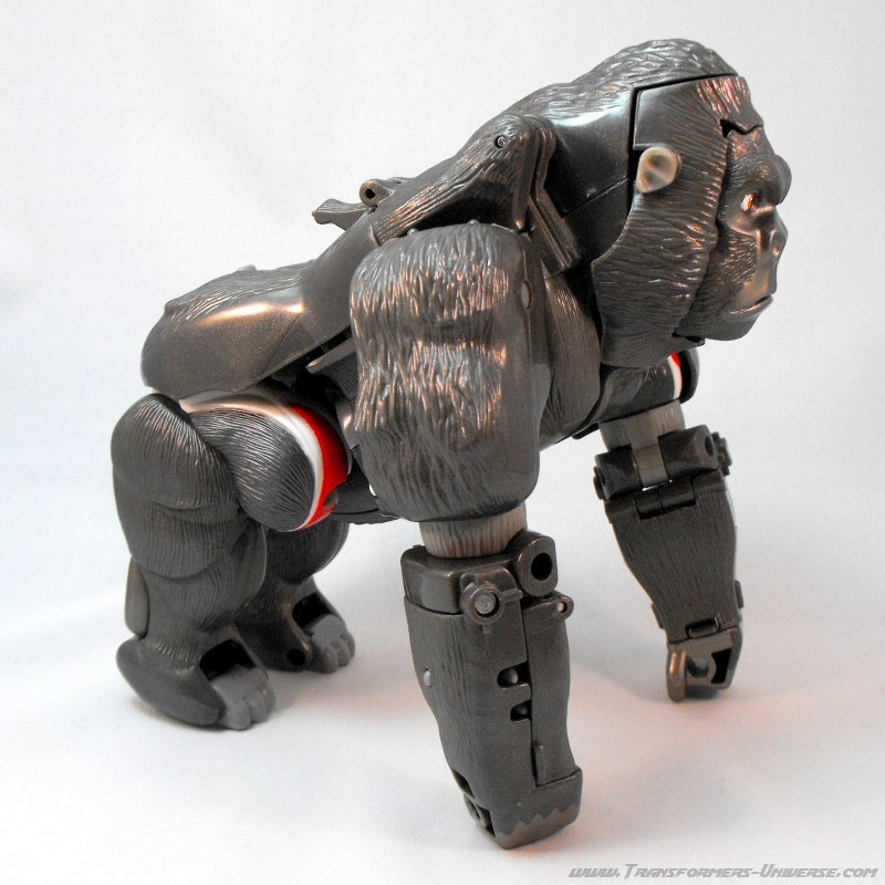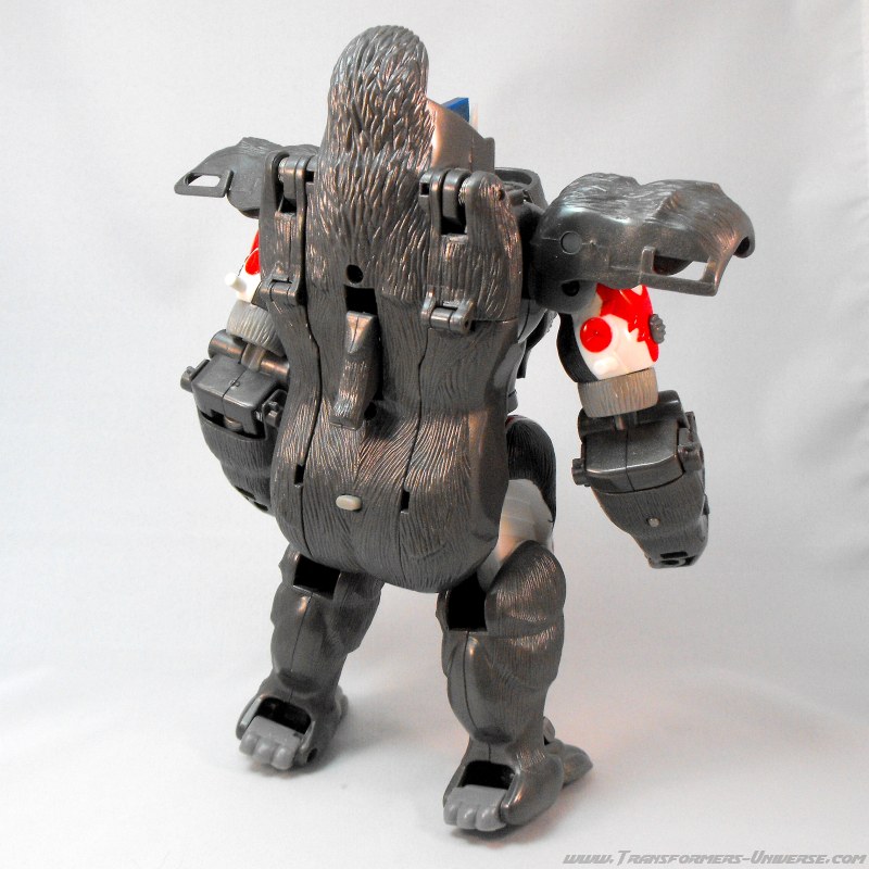 Von den Unterschieden abgesehen ist er natürlich noch immer der gleiche Gorilla. Die meisten Roboterteile sind gut versteckt, nur an den Armen sieht man ein wenig. Viel tun kann man hier nicht, die Beweglichkeit des Gorillas ist gegenüber dem Roboter deutlich eingeschränkter und das einzige Gimmick, was hier zur Anwendung kommt, ist das mit den schwingenden Armen. Natürlich muss man hierbei bedenken, dass für die 1996er Figuren das Gimmick ja schon darin bestand, dass sie sich in realistisch aussehende Tiere verwandelt haben. Und dazu kann man nur sagen: gut gemacht. Jetzt sicherlich nicht der wunderbarste Biestmodus aller Zeiten, aber für diese Figur vollends ausreichend.