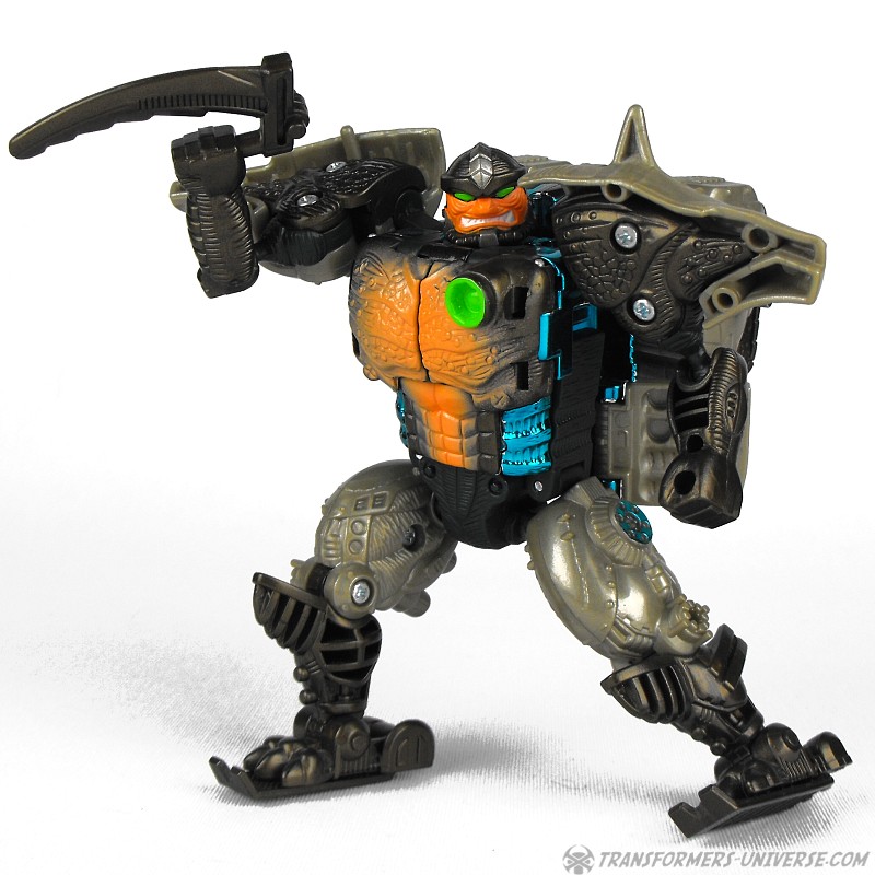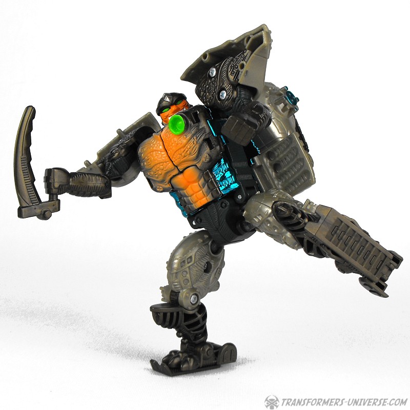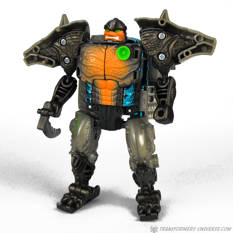 Bemerkungen: Rhinox war eine der Hauptfiguren der Beast Wars Serie, wurde aber dort nie zu einem Transmetal. Wahrscheinlich ist das mein Hauptkritikpunkt an dieser Figur. Transmetals Cheetor, Optimus Primal und Rattrap gehören zu meinen Lieblingsfiguren, hauptsächlich weil ihre Transmetalkörper in der Serie so gut eingesetzt wurden. Rhinox' Transmetalkörper war nie in der Serie, vielleicht mag ich ihn deshalb nicht so wie die anderen. Er ist trotzdem noch eine gute Figur und für sich genommen gibt es kaum Kritikpunkte. Eine gute Beast Wars Figur.