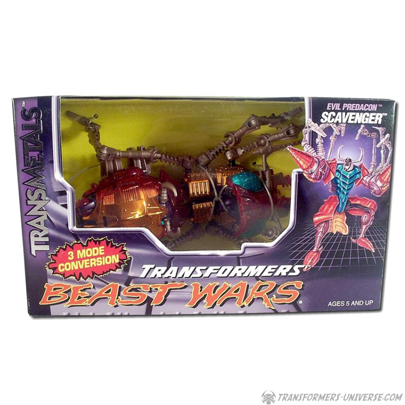 Bemerkungen: Der ursprüngliche Prototyp dieser Figur trug den Namen Transmetal Inferno und kam in Japan auch unter diesem Namen raus. Nur in der westlichen Welt wurde er in Scavenger umbenannt. Keine Ahnung wieso, vielleicht musste Hasbro das Copyright auf diesen Namen erneuern. Egal, für mich ist Scavenger die Transmetal-Form von Inferno und obwohl die Figur ein paar kleine Probleme hat ist sie immer noch ziemlich gut und für Beast Wars Fans wie mich selbst empfohlen.
