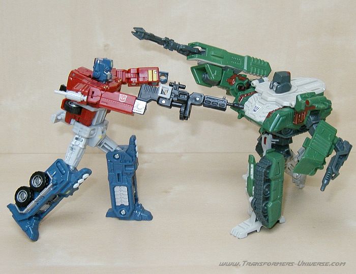 Bemerkungen: Der Grund sich das Ultimate Battle Doppelpack zu holen ist ganz klar Megatron. Die Figur ist einfach rundum klasse mit Ausnahme seiner Größe, hier hätte es ein wenig mehr sein dürfen, und er ist definitiv eine Zierde für jede Sammlung. Hier haben wir die Figur, die G2 Megatron hätte sein sollen, zumindest was Beweglichkeit und Spielspaß angeht. Außerdem sieht er deutlich gefährlicher und bösartiger aus als der Voyager-Klasse Classics Megatron. Allen Megatron Fans empfohlen.