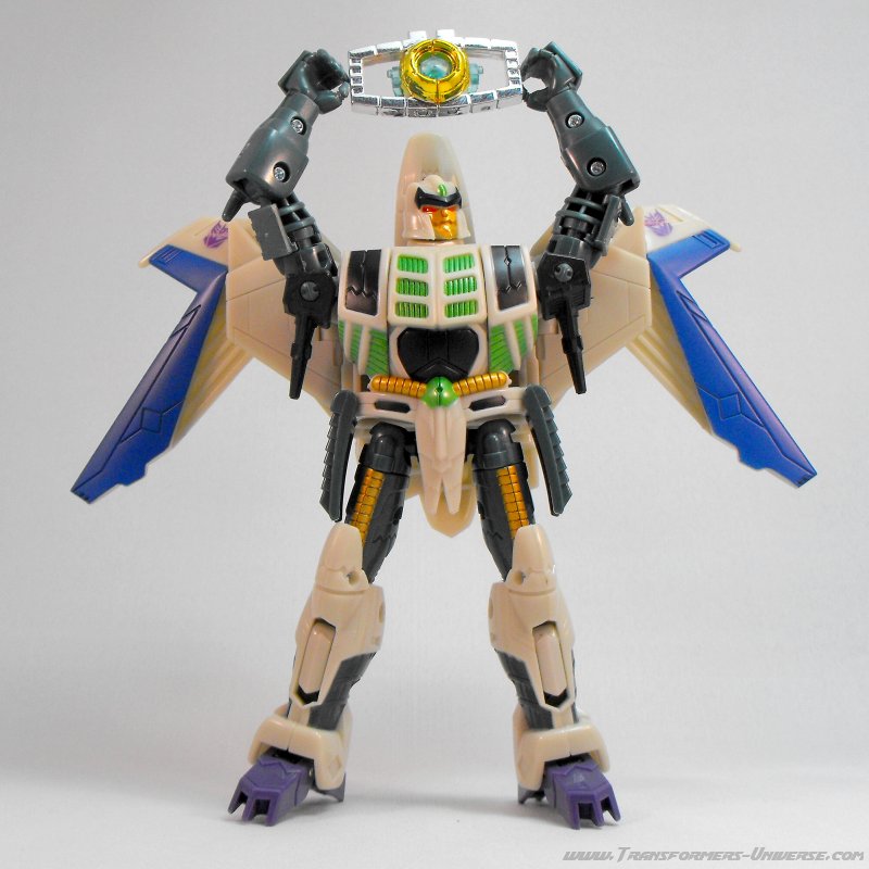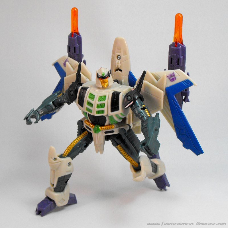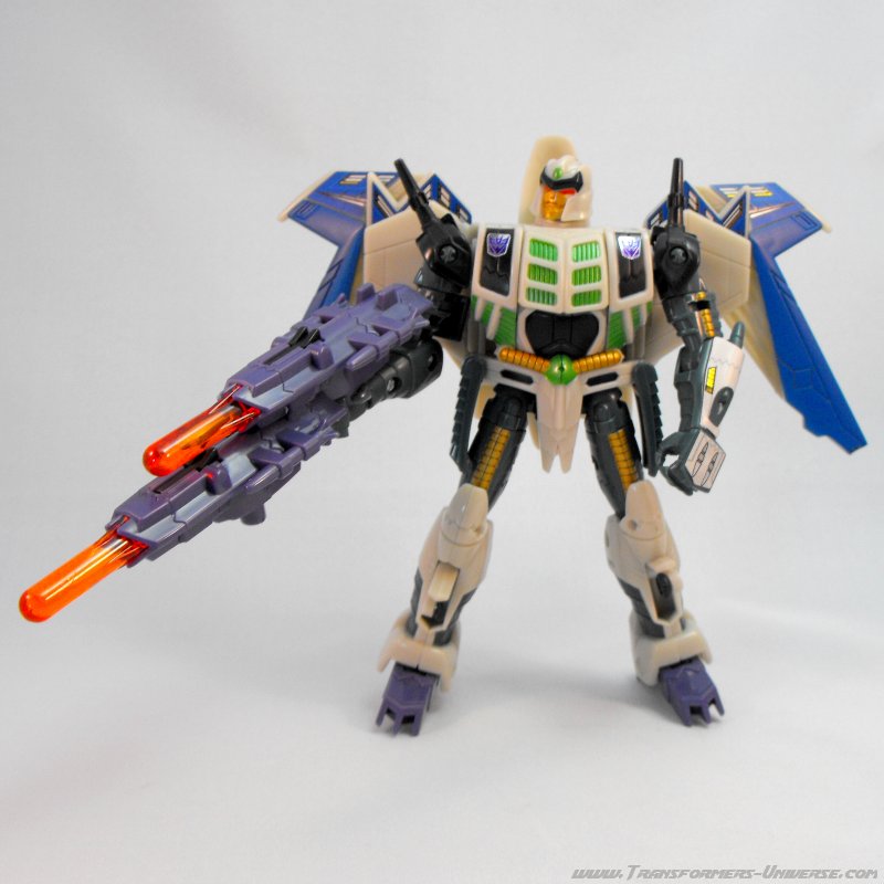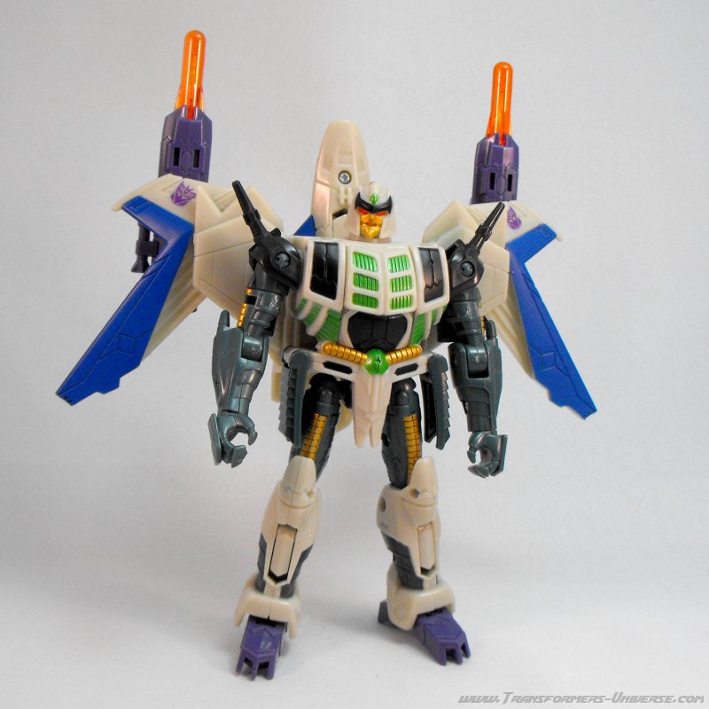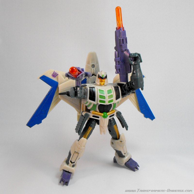 Bemerkungen: Obwohl er nie in irgendeinem Cartoon mitgespielt hat, hat Thunderwing eine lange Geschichte in den diversen Transformers Comics. In den alten Marvel Ausgaben war er eine Zeitlang Decepticon Anführer und außerdem der erste und einzige Decepticon, der erfolgreich die Matrix trug. Allerdings wurde er später von dessen Macht übermannt. In den IDW Comics war er ein Wissenschaftler, der den Niedergang Cybertrons vorhersah und sich selbst als Versuchskaninchen für seine verbotenen Pretender-Experimente benutzte. Dies verwandelte ihn in ein geistloses, unaufhaltbares Monster, dass Cybertron auf Jahrhunderte hinaus unbewohnbar machte. Erkennt ihr einen Trend?