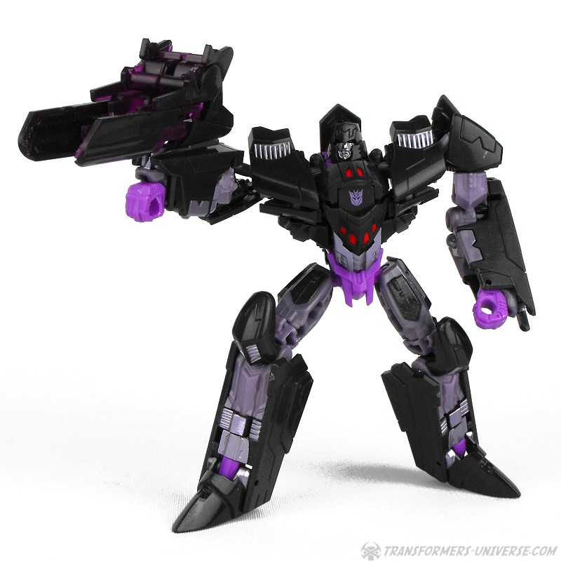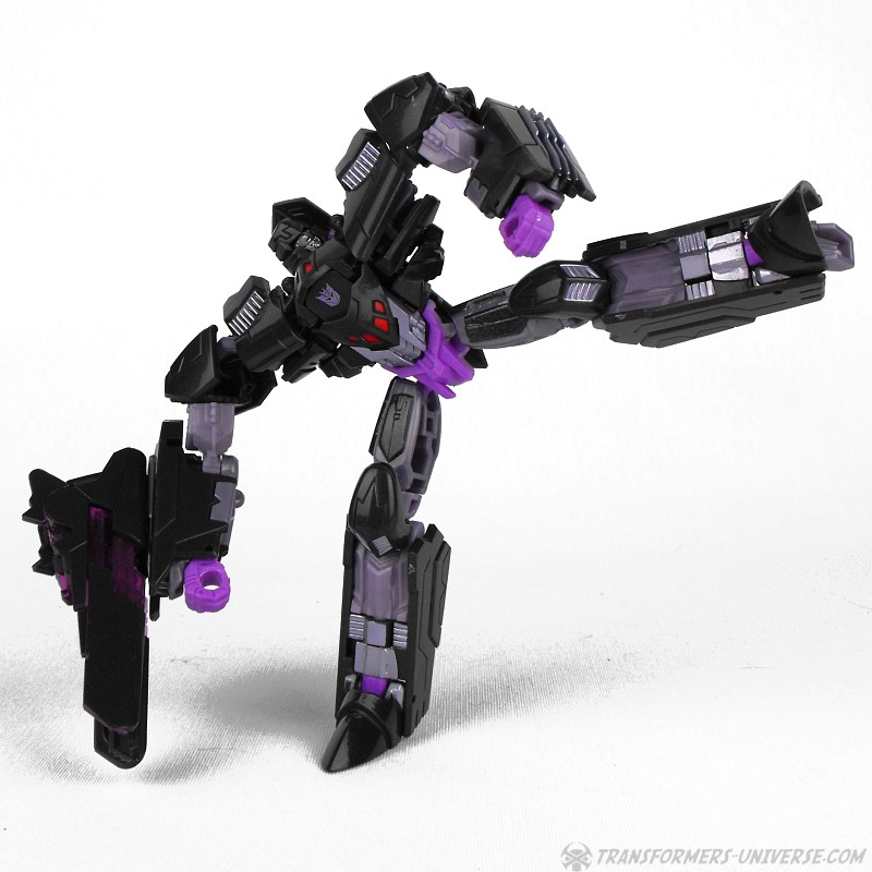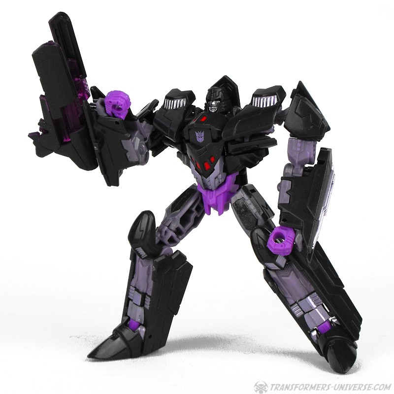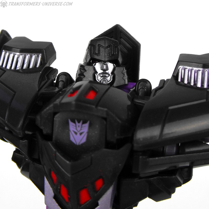 Bemerkungen: Diese Figur repräsentiert Megatron, wie wir ihn in den IDW G1 Comics sahen, ein Design aus der Feder von Don Figuera. Nachdem er am Ende der „All Hail Megatron“ Reihe schwer beschädigt war (wie wir alle, nachdem wir diesen Müll gelesen hatten) baute Shockwave Megatron einen neuen Körper aus dem Erz-13, was in einem dermaßen übermächtigen Megatron resultierte, dass es schon fast lächerlich war. Nicht nur war er praktisch unzerstörbar (ein Satellit fiel auf dem Orbit auf ihn drauf, ohne ihn anzukratzen), er hatte außerdem eine eingebaute Weltraumbrücke, mit der er die gesamte Decepticon Armee von der Erde nach Cybertron bringen konnte, konnte sich mit den Überresten seines alten Körpers zu einem Hyper-Mega-Ultra-Giga-Supermodus verbinden, um es sogar mit dem Decepti-God (einem Combiner geschaffen aus ALLEN Decepticons) aufzunehmen, und konnte außerdem auf eine mir immer noch nicht wirklich verständliche Weise irgendeine Strahlung auf Cybertron so beeinflussen, dass sich diverse Bots spontan zu Combinern verbunden haben. So was halt. Und ich dachte eigentlich immer, dass Master Galvatron aus Galaxy Force am unrealistischsten übermächtig wäre.