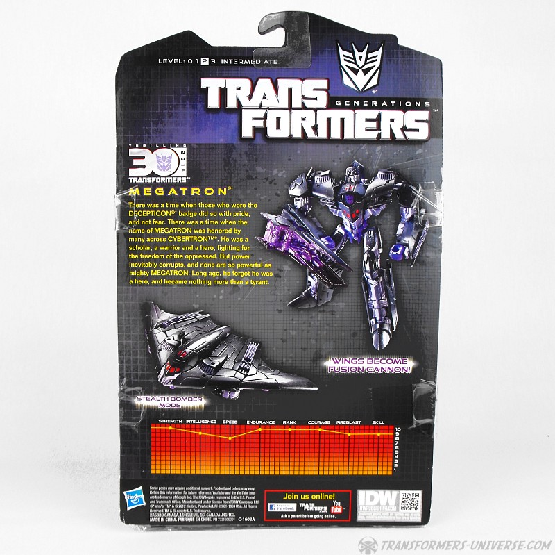 Aber egal, wenn man die lächerliche Hintergrundgeschichte dieser Figur mal beiseite lässt, dann ist sie einfach cool. Der einzige Minuspunkt ist die Größe, da für mich ein Megatron eigentlich Voyager-Klasse oder größer zu sein hat, aber ansonsten; ein erstklassiger Transformer. Kleine Randnotiz noch: die US-Version dieser Figur kommt mit dem IDW Spotlight: Megatron als Beigabe, die europäische Version lässt das Comic weg.