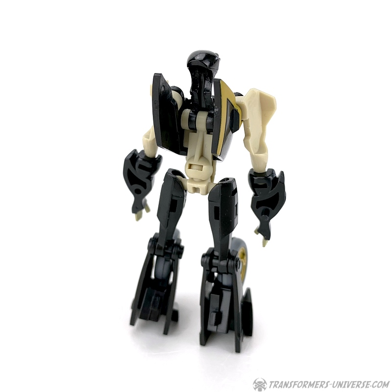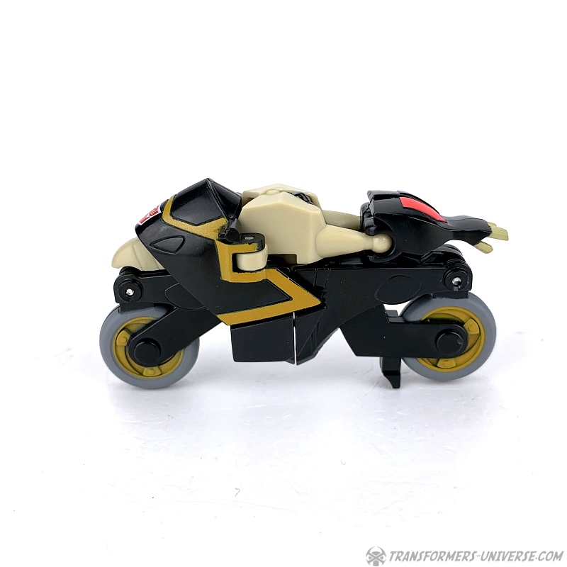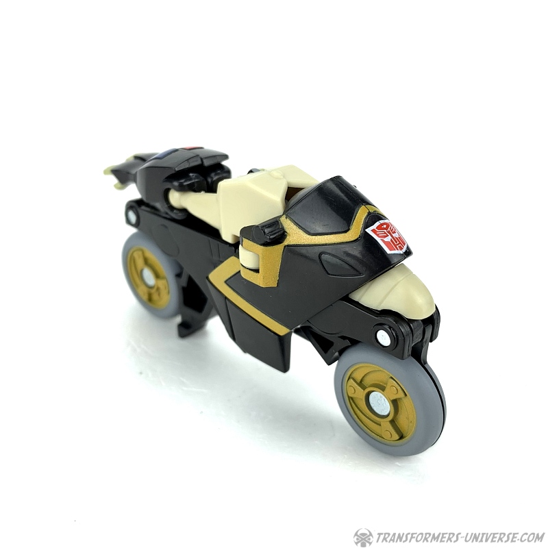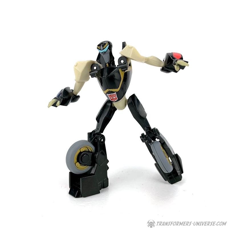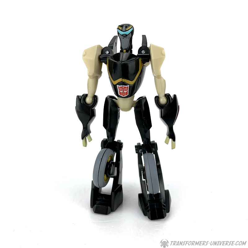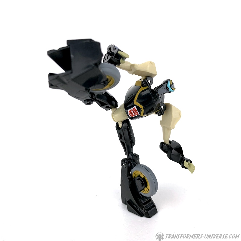 Robotermodus: Legends Prowl ist eine schön gemachte Miniaturversion von Animated Deluxe Prowl. An Details hat er natürlich weniger zu bieten als die größere Version, aber das war ja zu erwarten. Seine Beweglichkeit ist sehr gut, wenn auch einige Posen verlangen, dass man die Räder in den Schienenbeinen je nach Bedarf vor- oder zurückschiebt. Seine Wurfstern-Radkappen sind leider nicht enthalten, aber auch das war ja zu erwarten. Viel mehr kann ich eigentlich nicht zu dem Thema sagen. Ein guter, schnörkelloser Mini-Prowl.