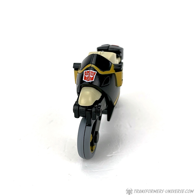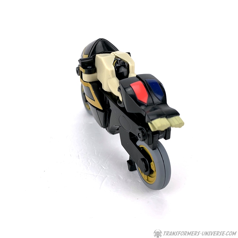 Alternativmodus: Bedenkt man wie sich Deluxe Prowl verdrehen muss um zum Motorrad zu werden, sowie die geringe Größe dieser Legends Figur hier, dann ist es schon beeindruckend, wie gut Prowl im Fahrzeugmodus aussieht. Okay, man kann kaum übersehen, dass die Arme seines Robotermodus den Sitz und das Heck des Motorrads bilden, aber der Rest ist sehr gut konstruiert. Man sieht keine Anzeichen für irgendwelche sonstigen Körperteile des Roboters. Also Daumen hoch, einer der besseren Legends-Klasse Fahrzeugmodi, die ich kenne.